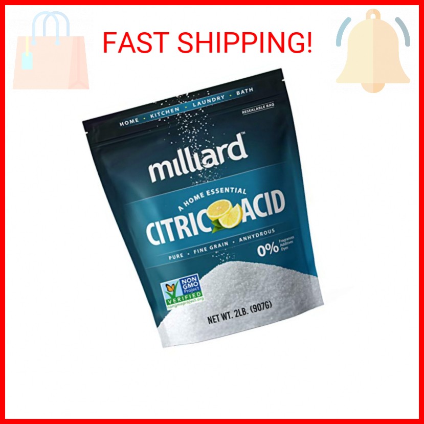 Milliard Citric Acid Powder Food Grade, 2 lb Bag, Bulk, 100 Pure Citric Acid Fo