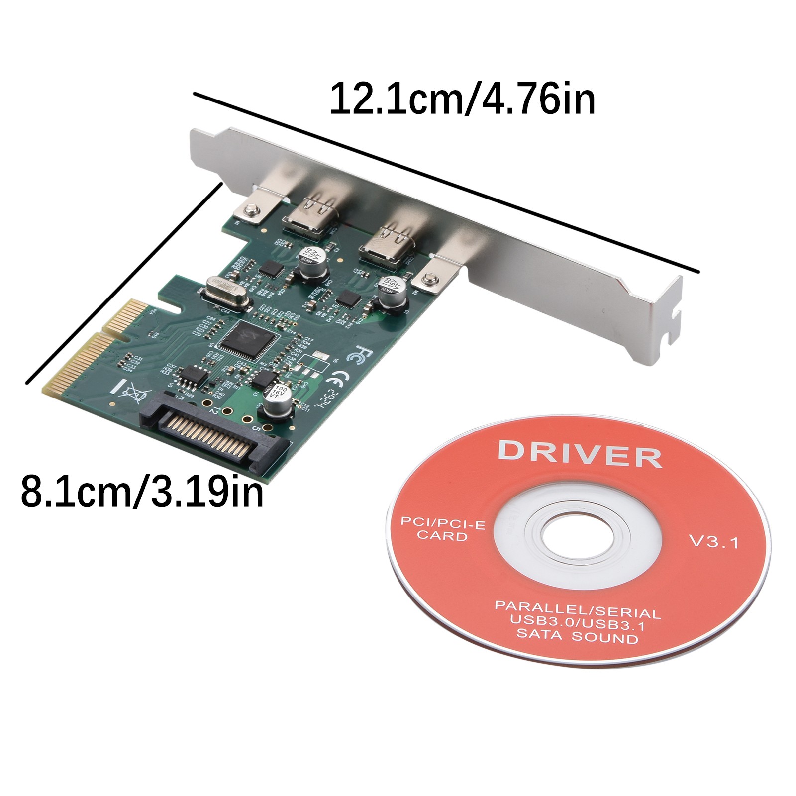 PCI-E 4x Express to USB 3.1 USB Type C Dual Port Add on Expansion Card Adapter e