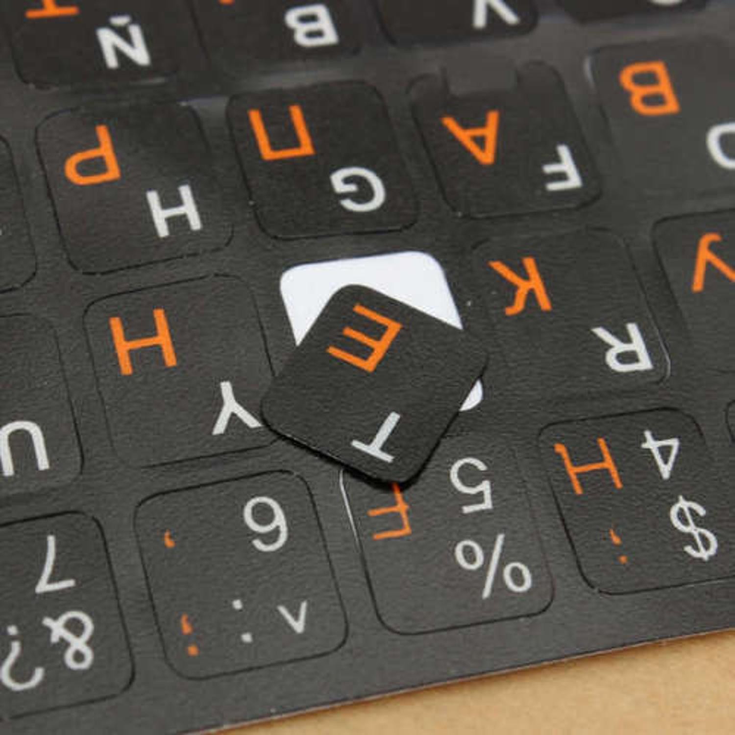 как выглядит Russian Standard Keyboard Layout Sticker Orange Letters on Black Replacement I фото