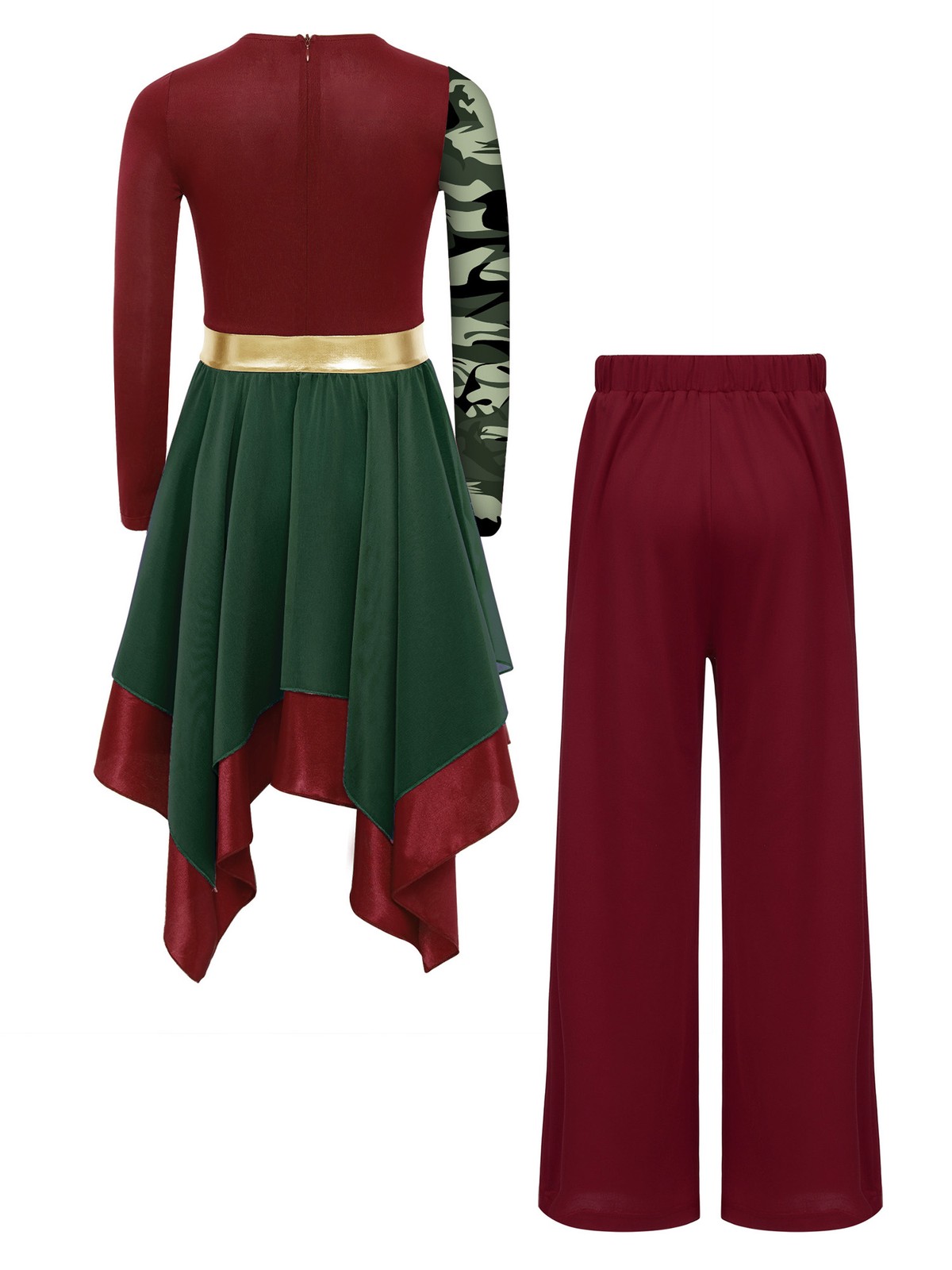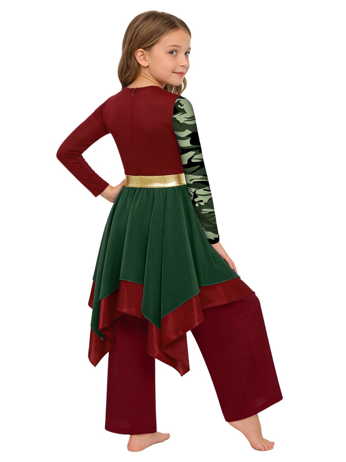 Kids Girls Liturgical Praise Dance Dress Metallic Asymmetrical Worship Costume