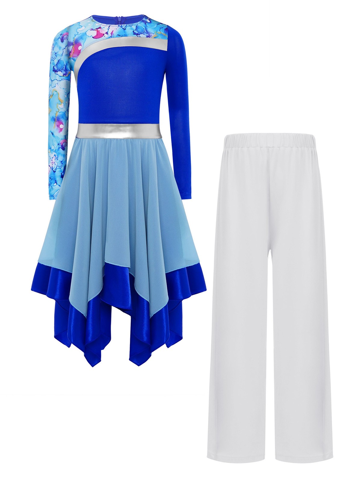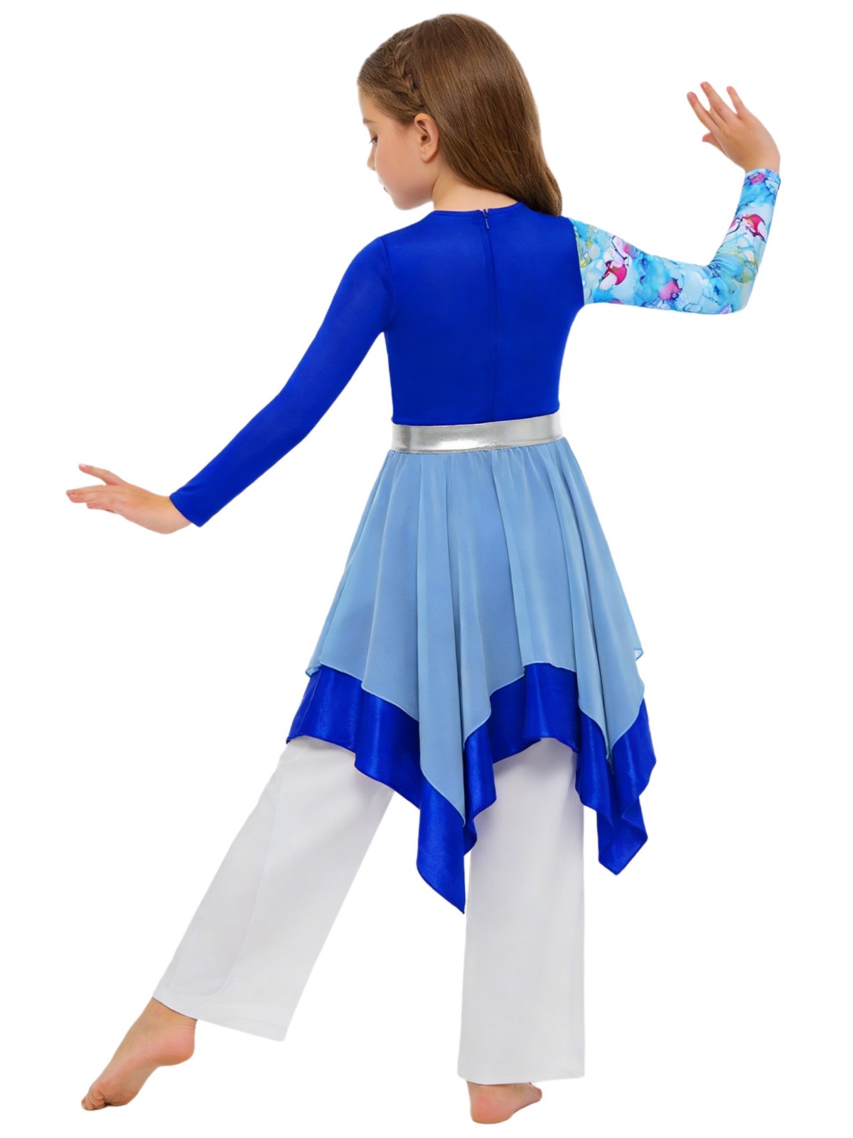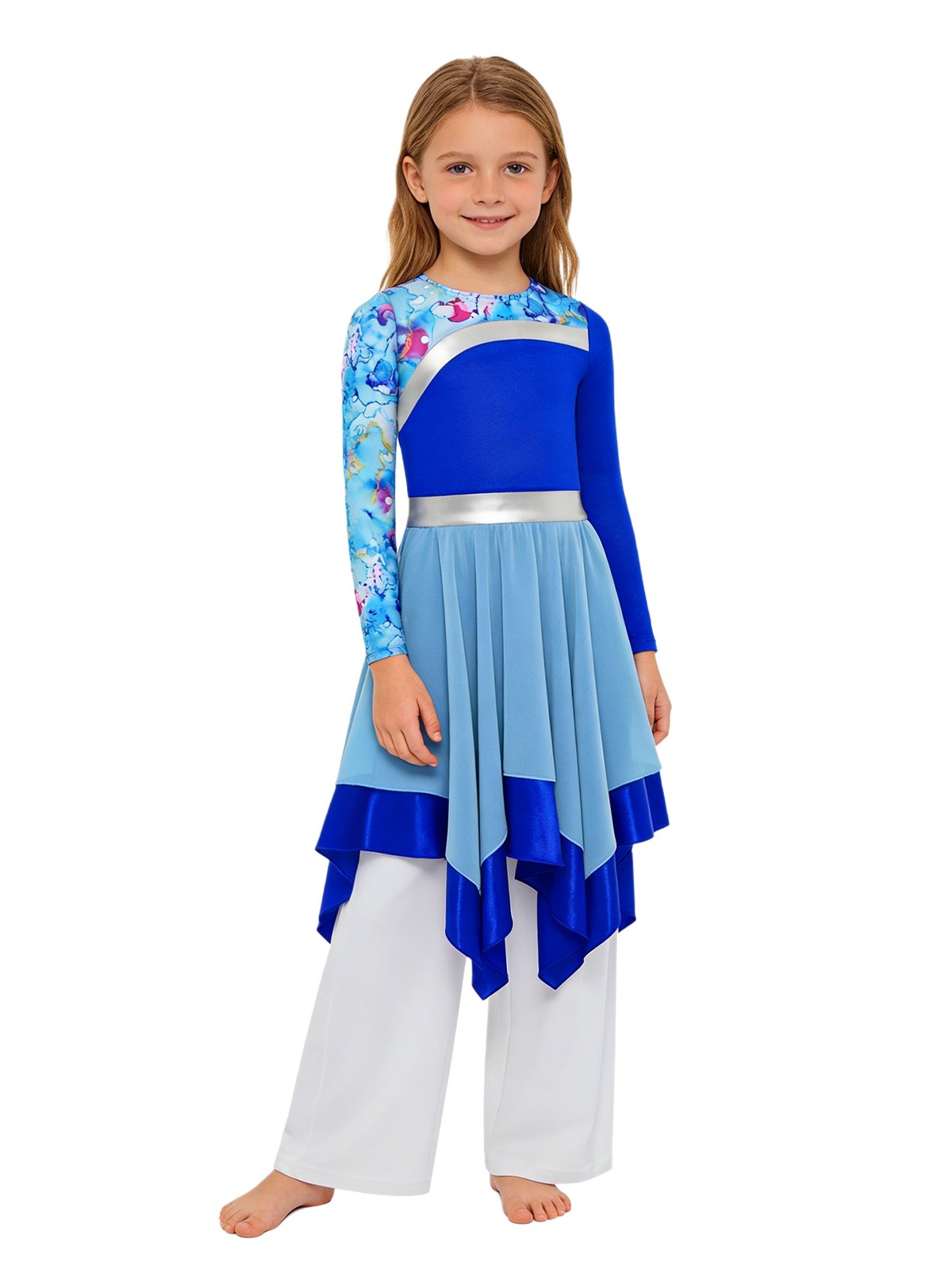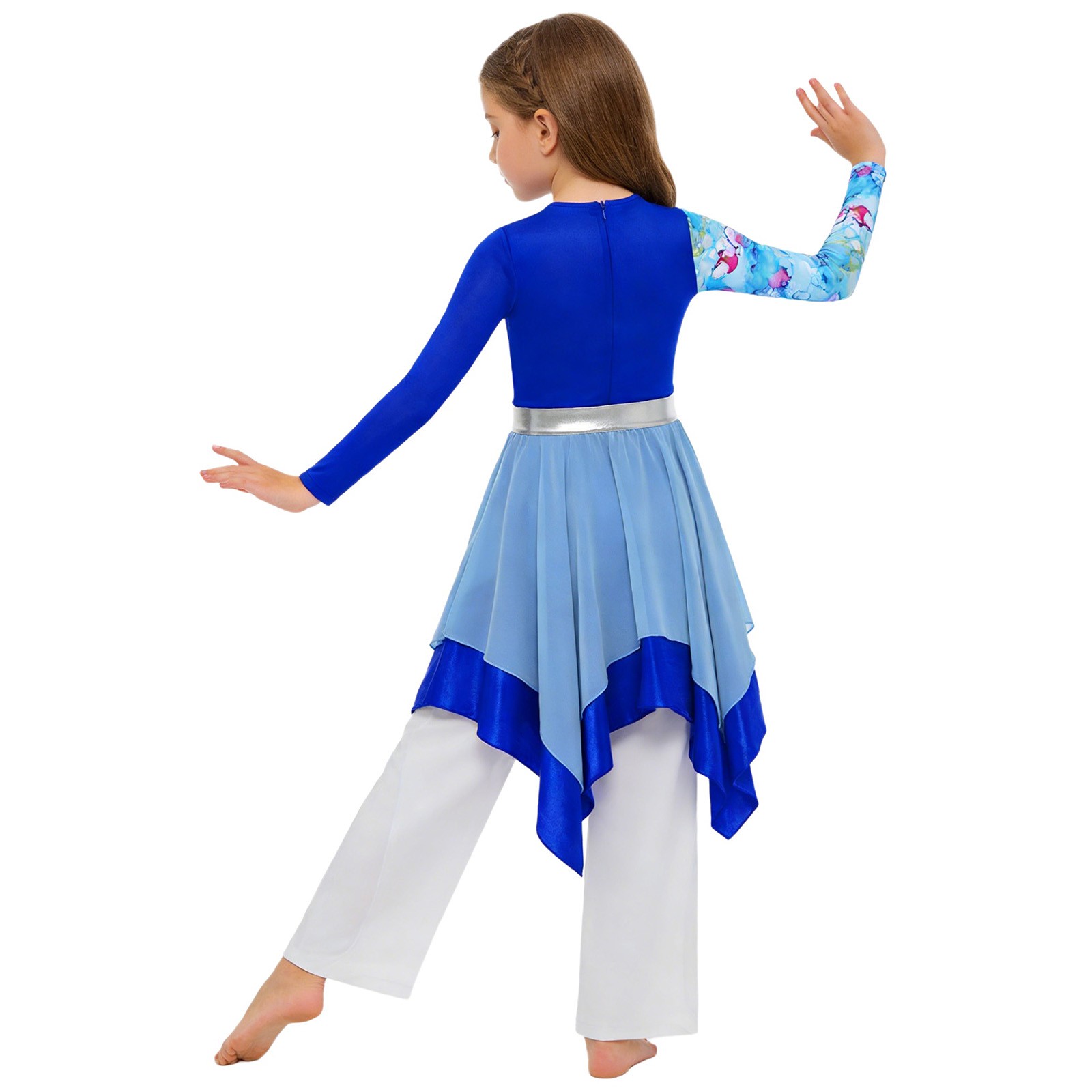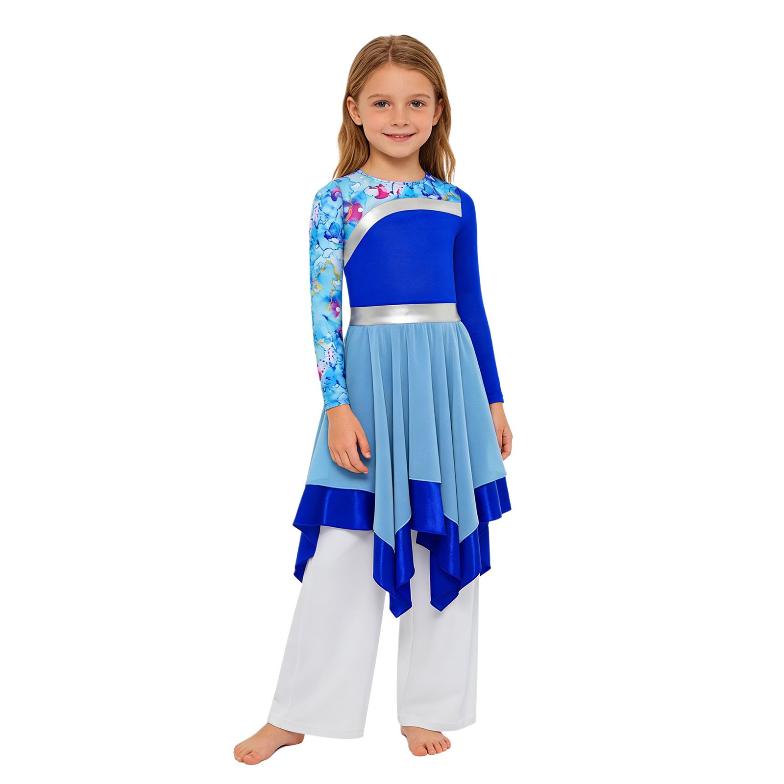 Kids Girls Liturgical Praise Dance Dress Metallic Asymmetrical Worship Costume