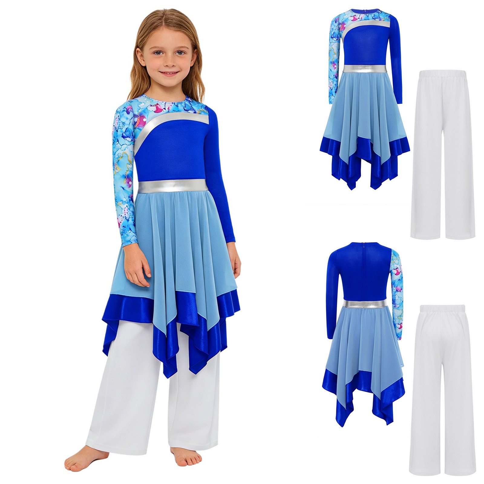 как выглядит Kids Girls Liturgical Praise Dance Dress Metallic Asymmetrical Worship Costume фото