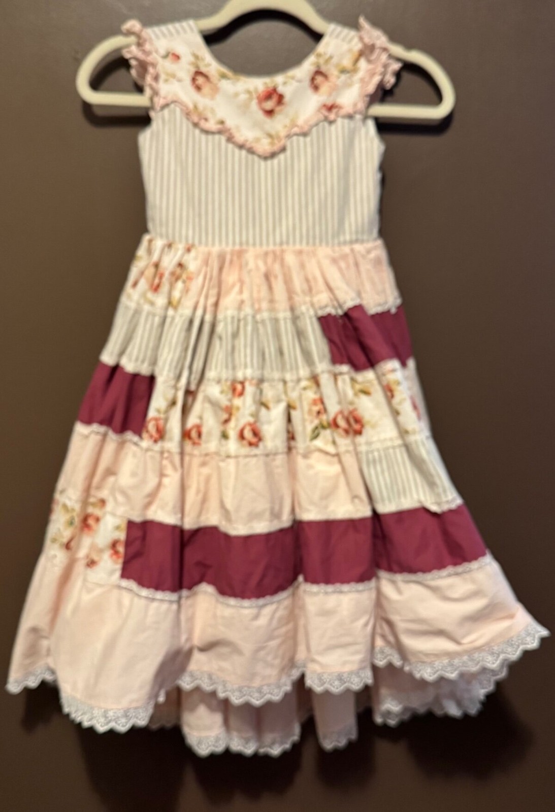 Dollcake Ever After Patchwork Frock Dress Floral Pink Cream Girls Size 7