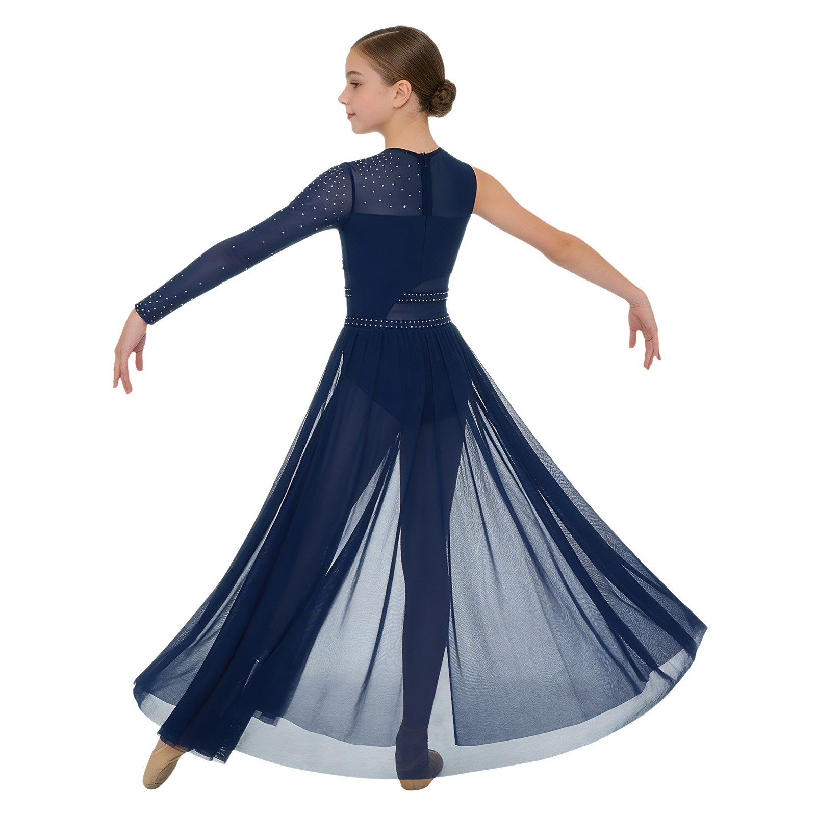 Girls Contemporary Sparkly Dress Asymmetrical Sleeve Lyrical Dance Talent Show