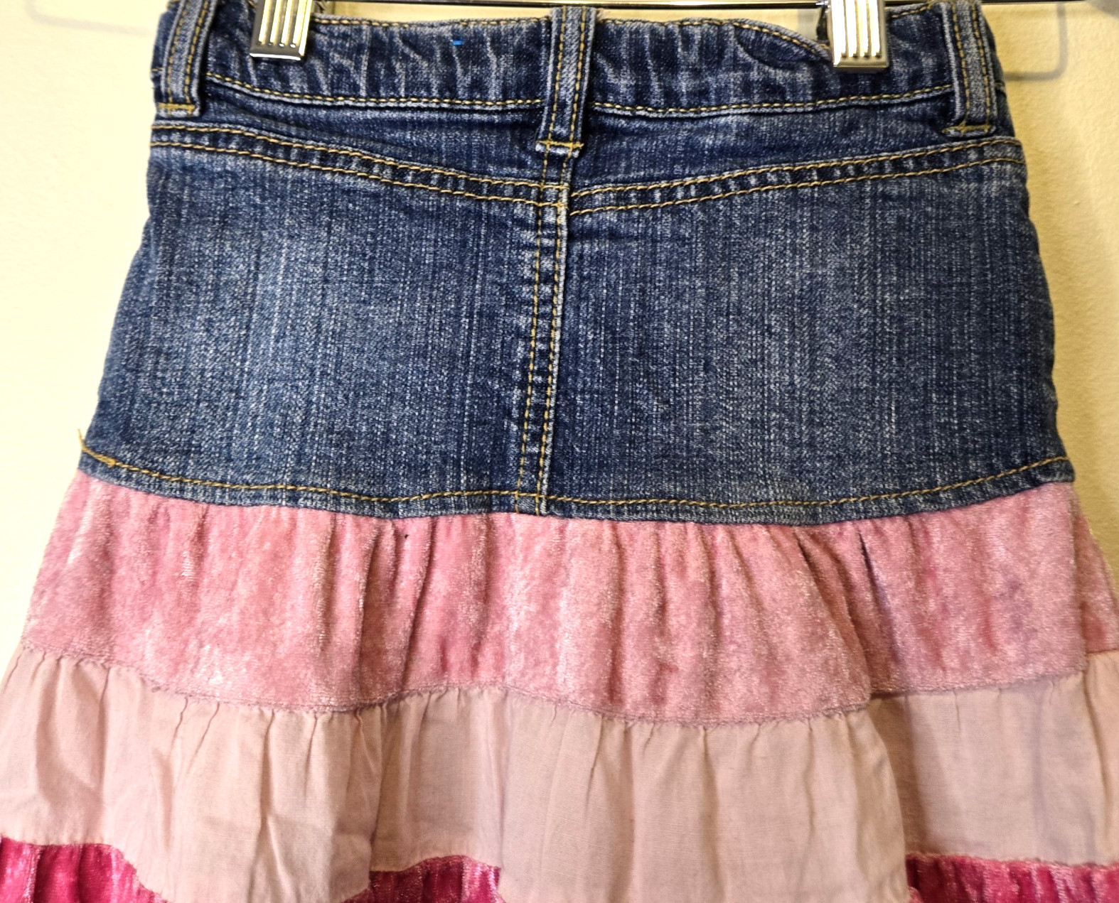 VTG The Children's Place Jean Skirt Girls Sz 5 Denim Multi-Ruffled Country Denim