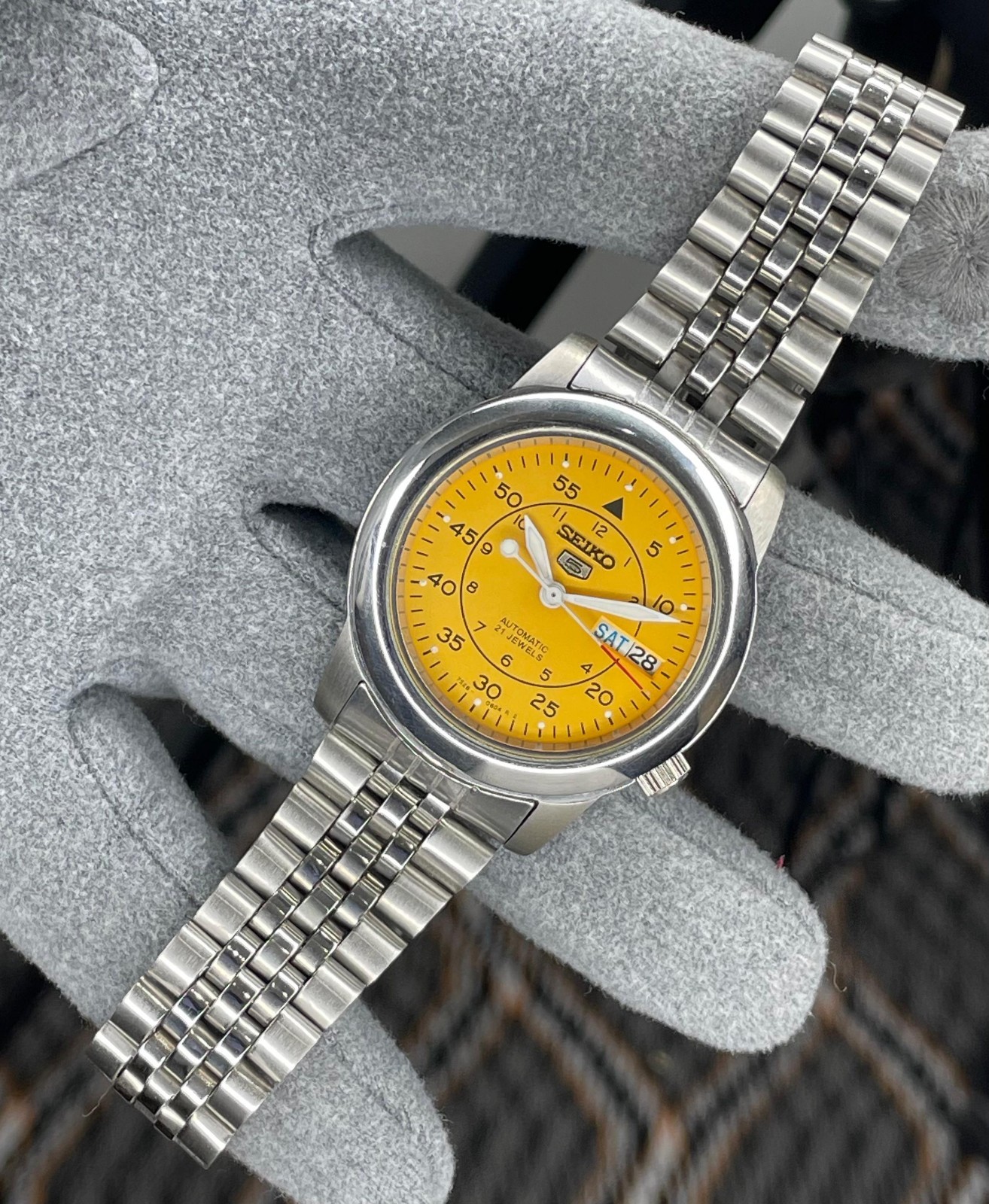 как выглядит Vintage Seiko 5 Automatic , 7S26 Movement Military Yellow Dial l Men