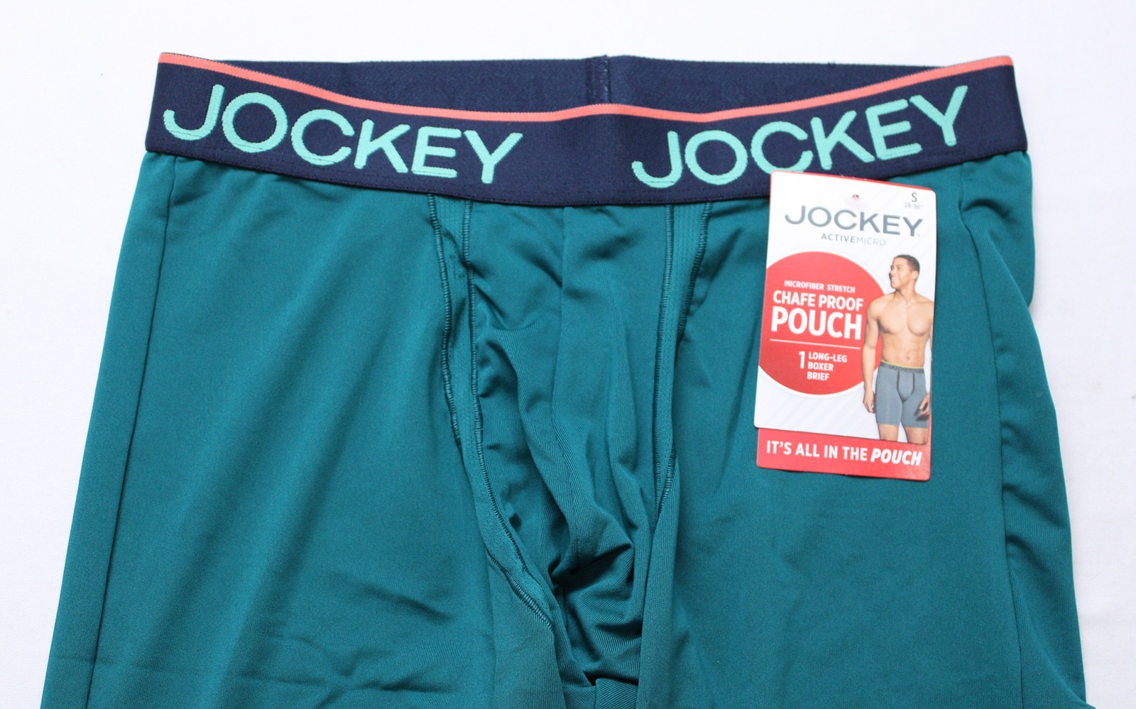 как выглядит Jockey Mens Chafe Proof Pouch 8.5" Long Leg Boxer DH3 Teal Green Small NWT фото
