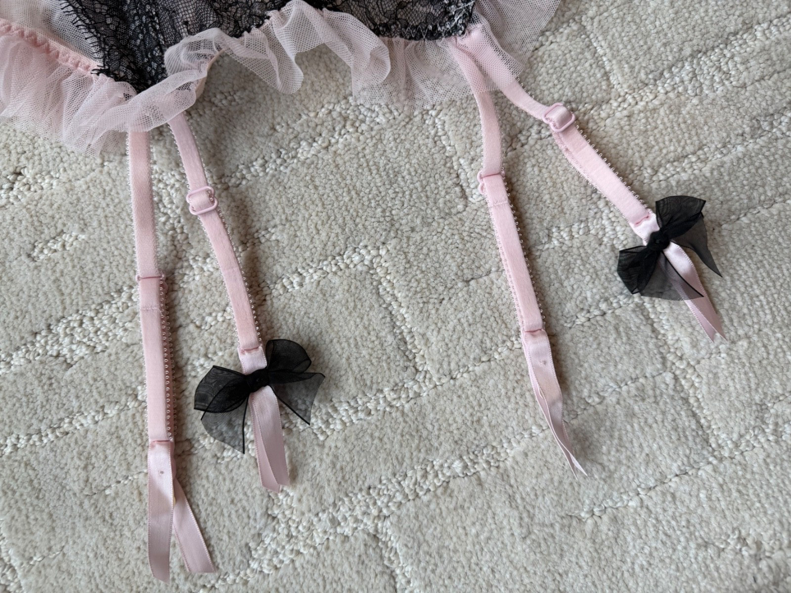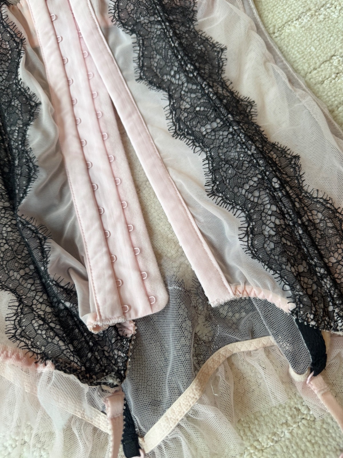 как выглядит Victoria s Secret Chantilly Lace Bustier Corset Top Pink Black 36B NEVER WORN фото