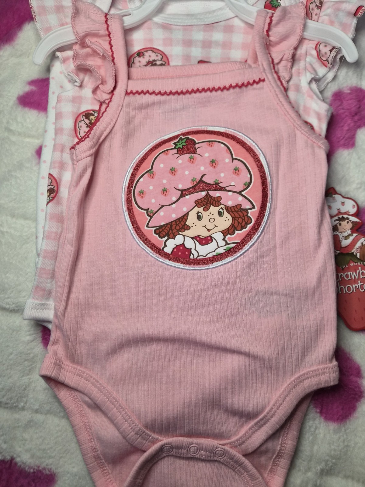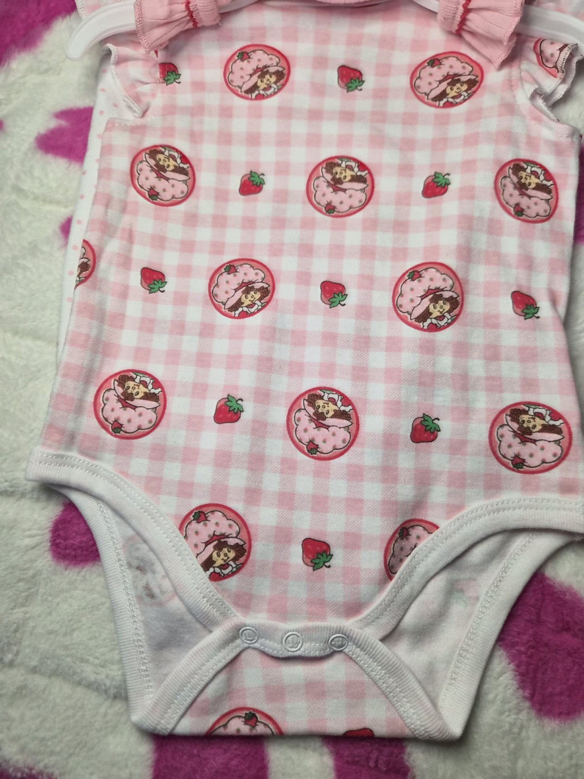 как выглядит 6 Months Baby Girl Pink White Strawberry Shortcake Bodysuits - New фото