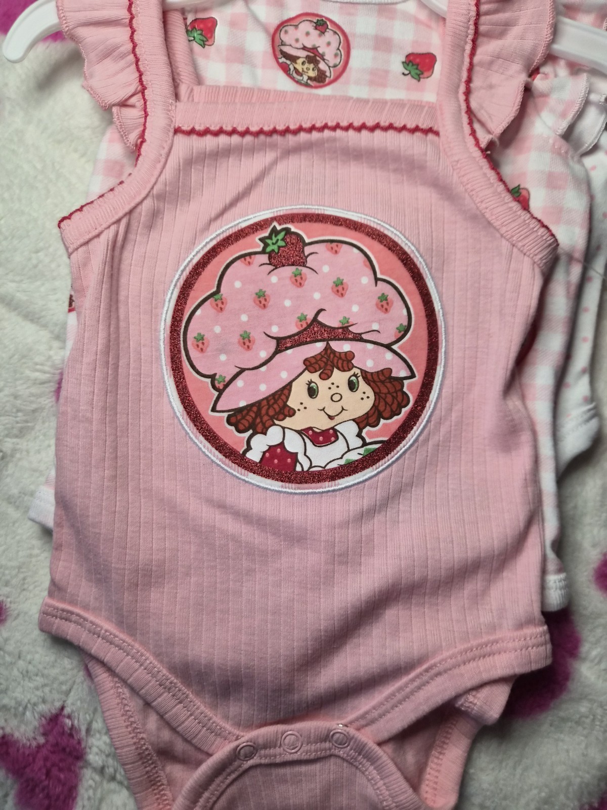 как выглядит 3 Months Baby Girl Pink White Strawberry Shortcake Bodysuits - New фото