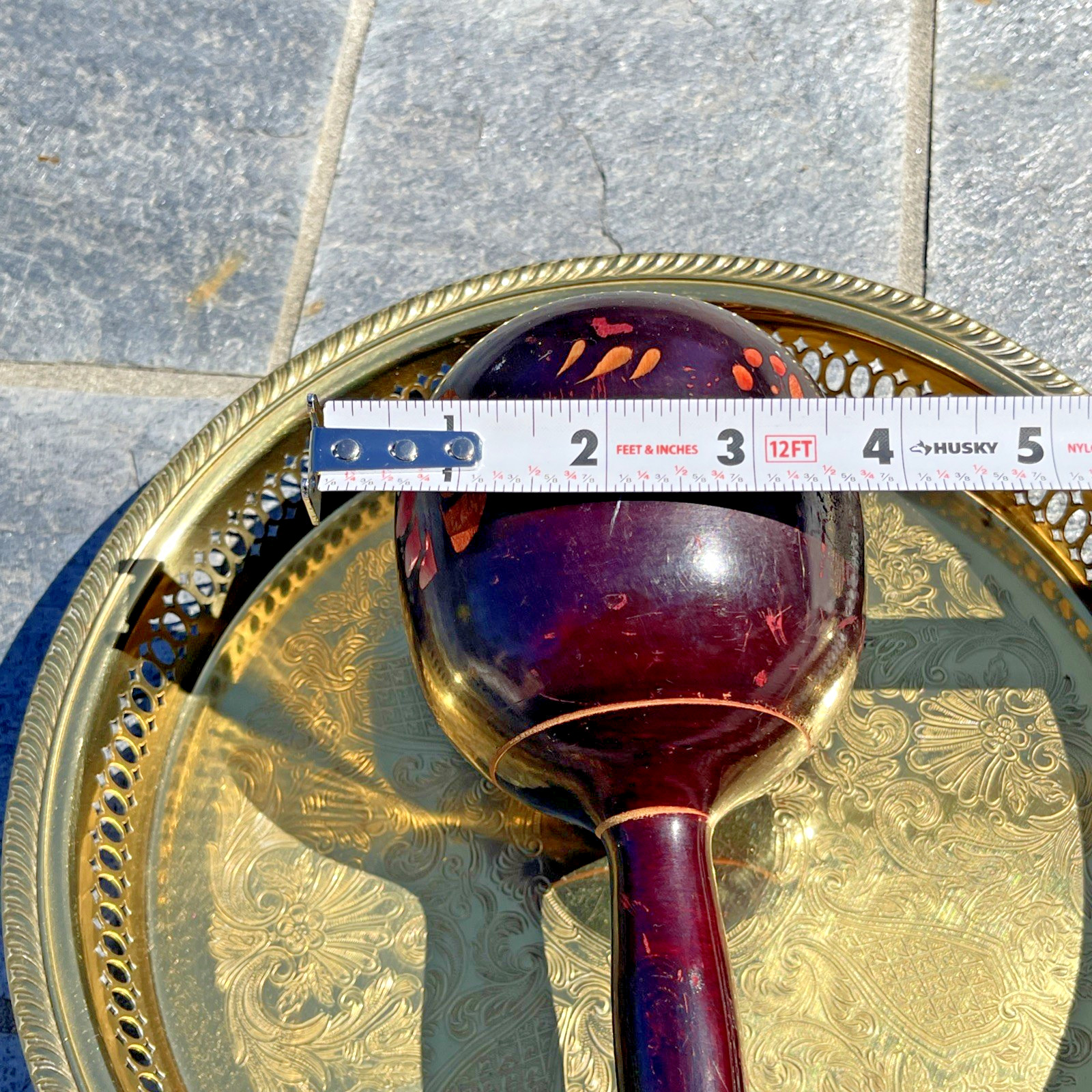 как выглядит Vintage Wooden Gourd Maracas Purple Hand Painted 11" Mexico Rumba Etched Floral фото
