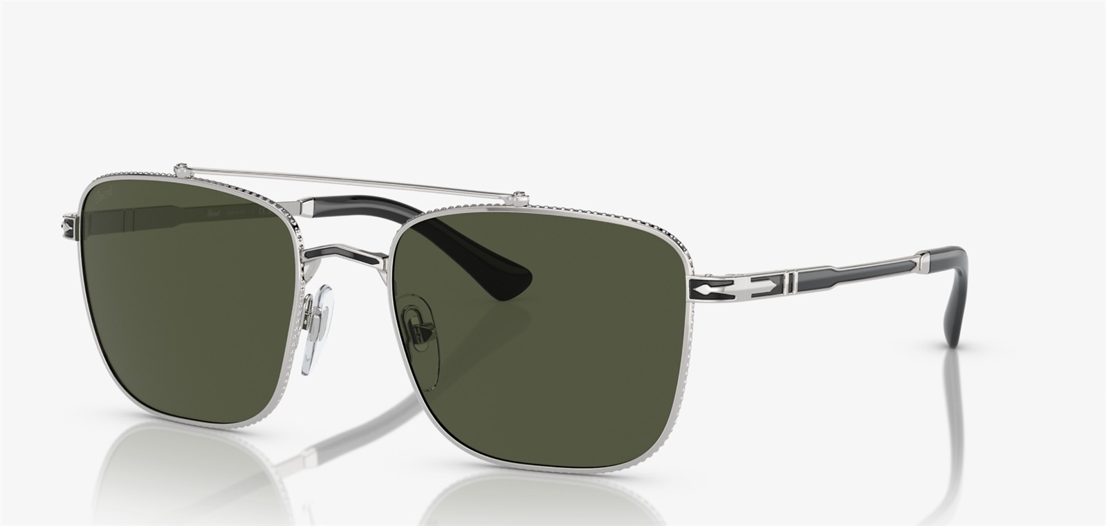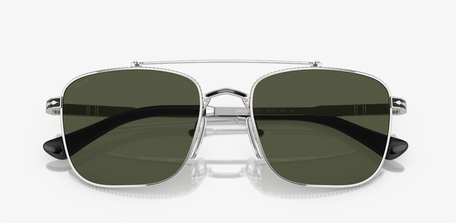 как выглядит Persol Sunglasses PO 2487-S 1113/31 Polished Silver Black Green Glass with Case фото