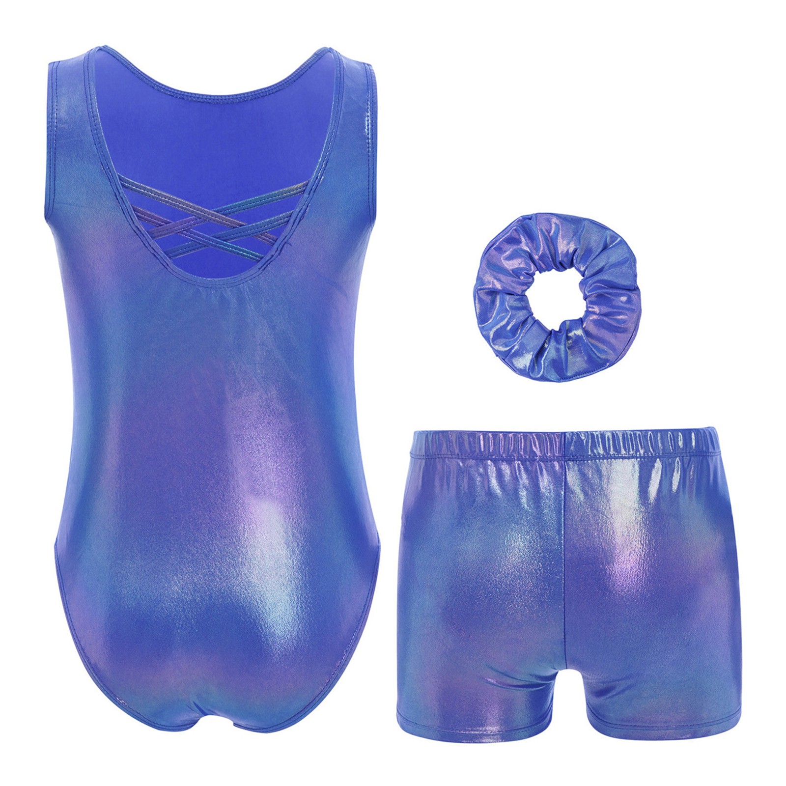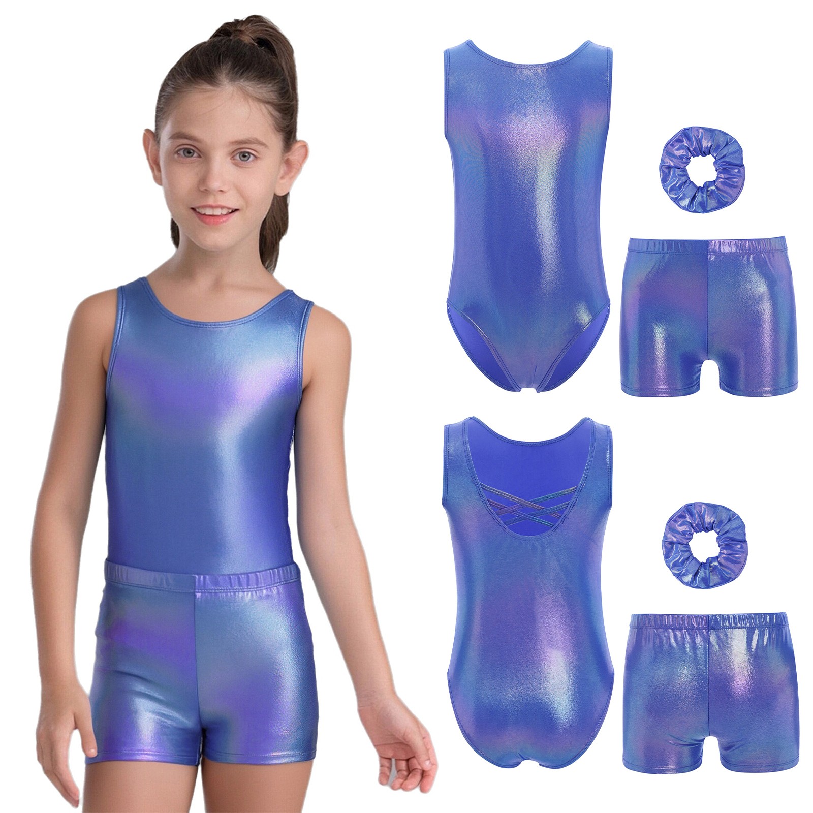 как выглядит Kids Girls Dancewear Dance Outfit Ballet Set Stage Gymnastics Shiny Metallic фото