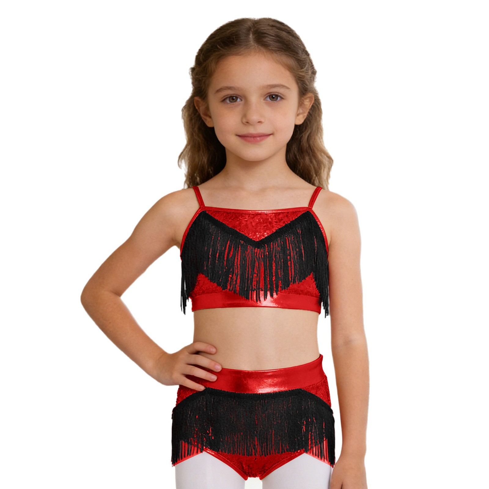 Kids Girls Competition Salsa Outfit Patchwork Dancewear Cha-Cha Costume Tango