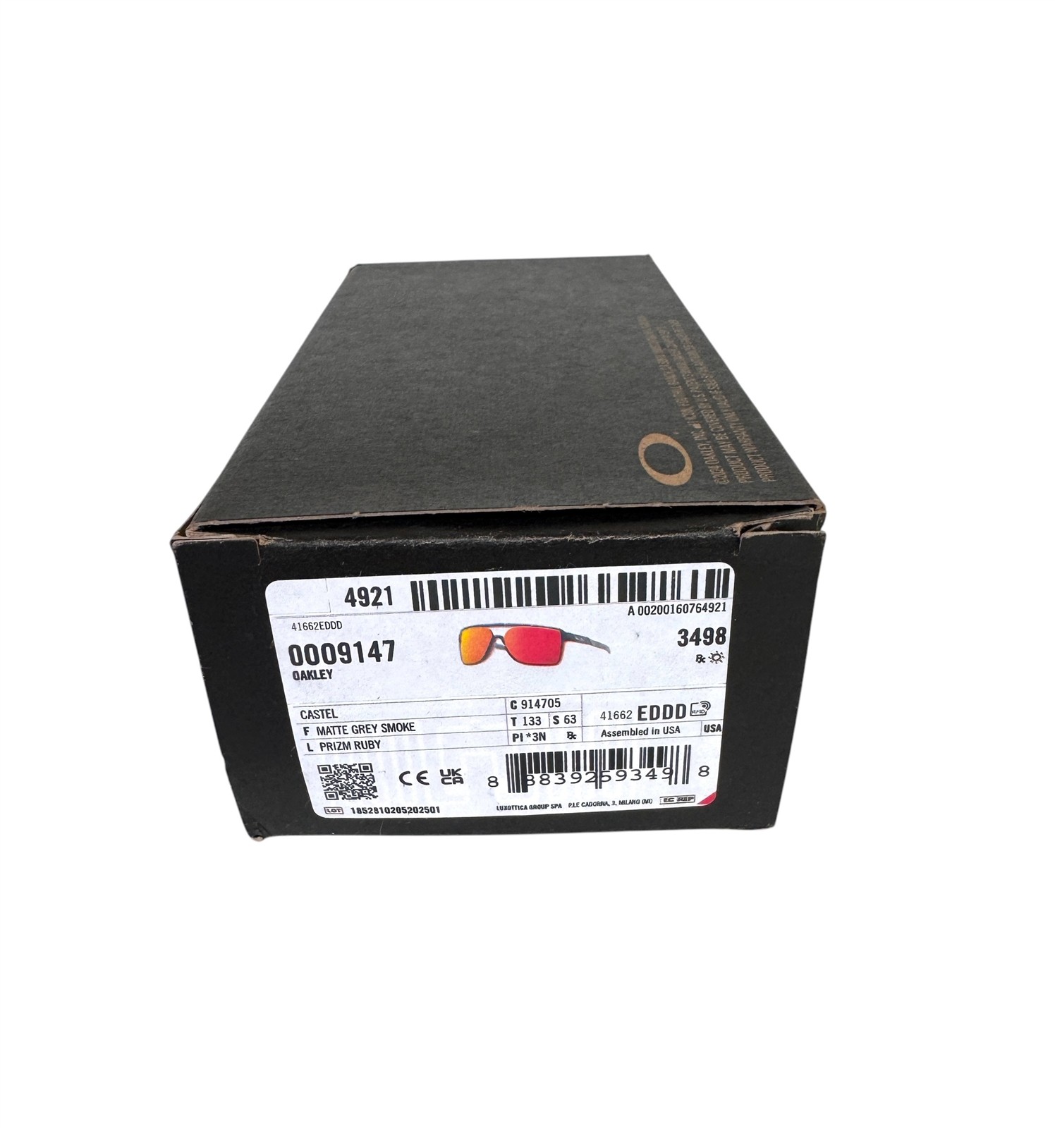 Oakley Castel Sunglasses Matte Gray Smoke Prizm Ruby OO9147-0563 with Pouch