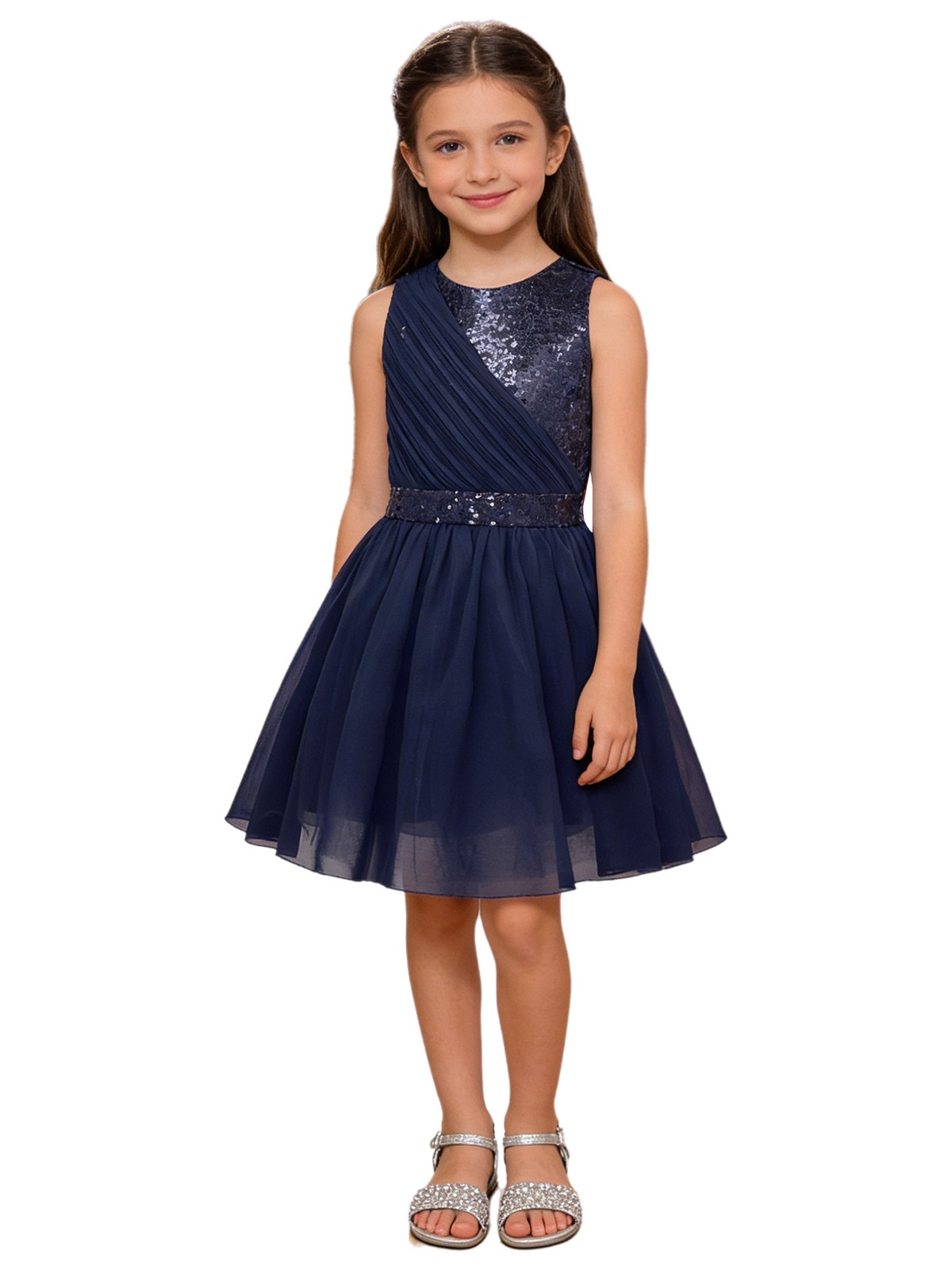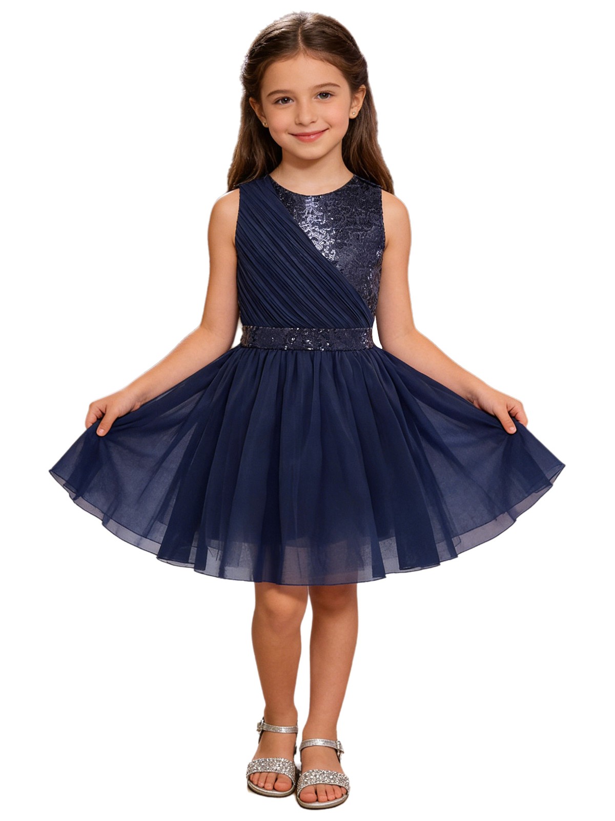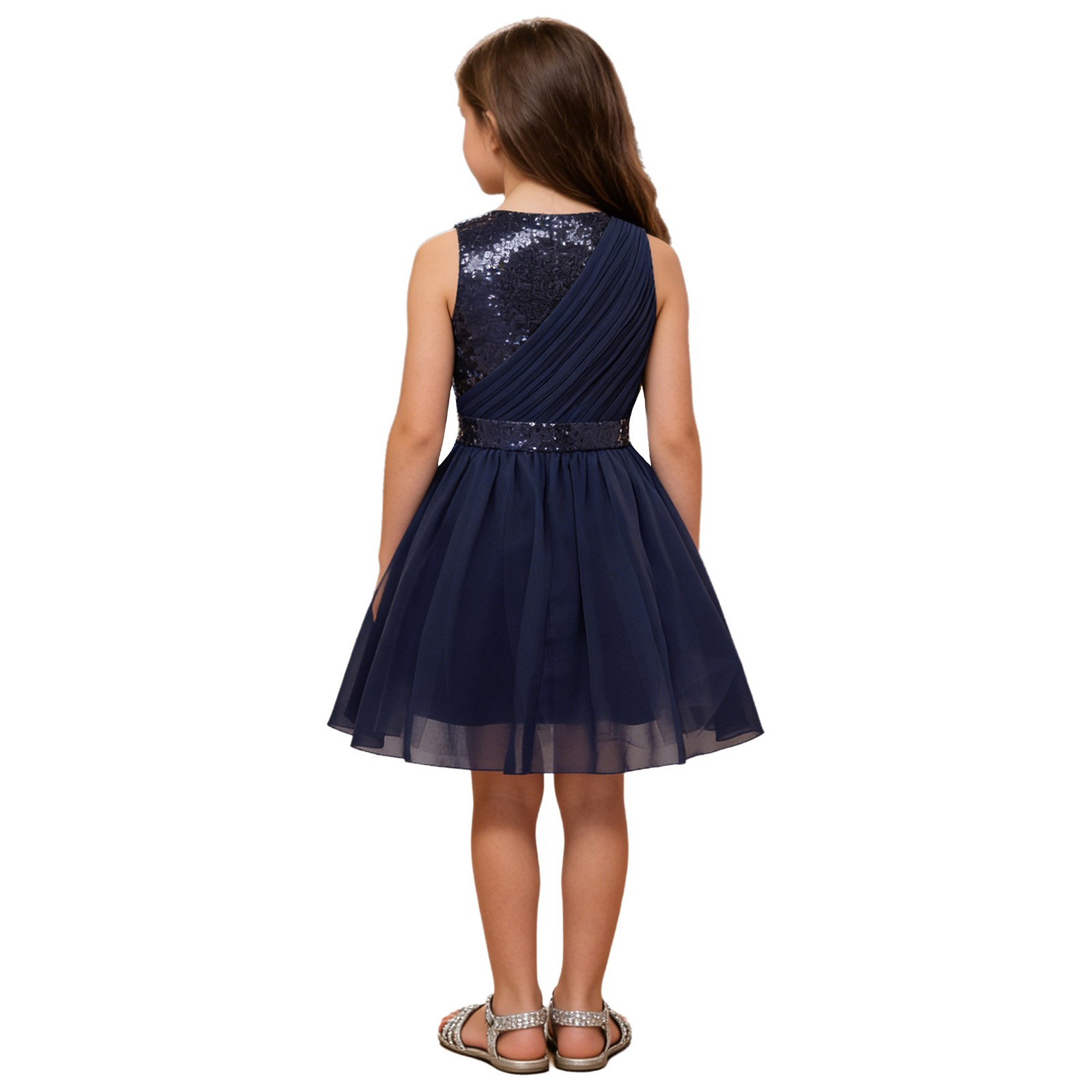 как выглядит Kids Girls Gown Asymmetrical Dresses Puff Dress Sparkly Glittery Formal Sequin фото
