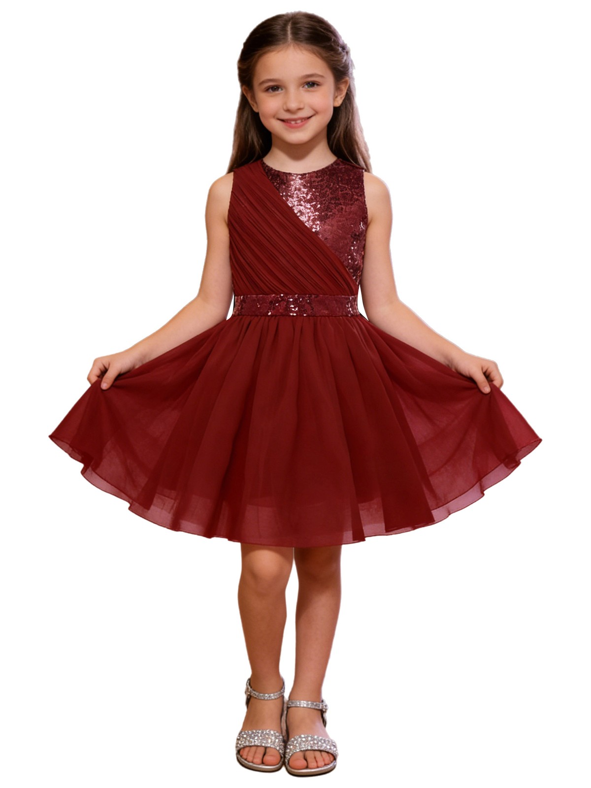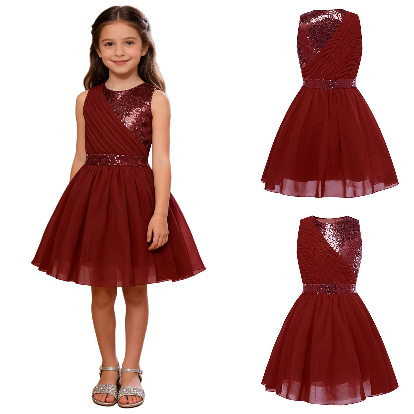 Kids Girls Gown Asymmetrical Dresses Puff Dress Sparkly Glittery Formal Sequin
