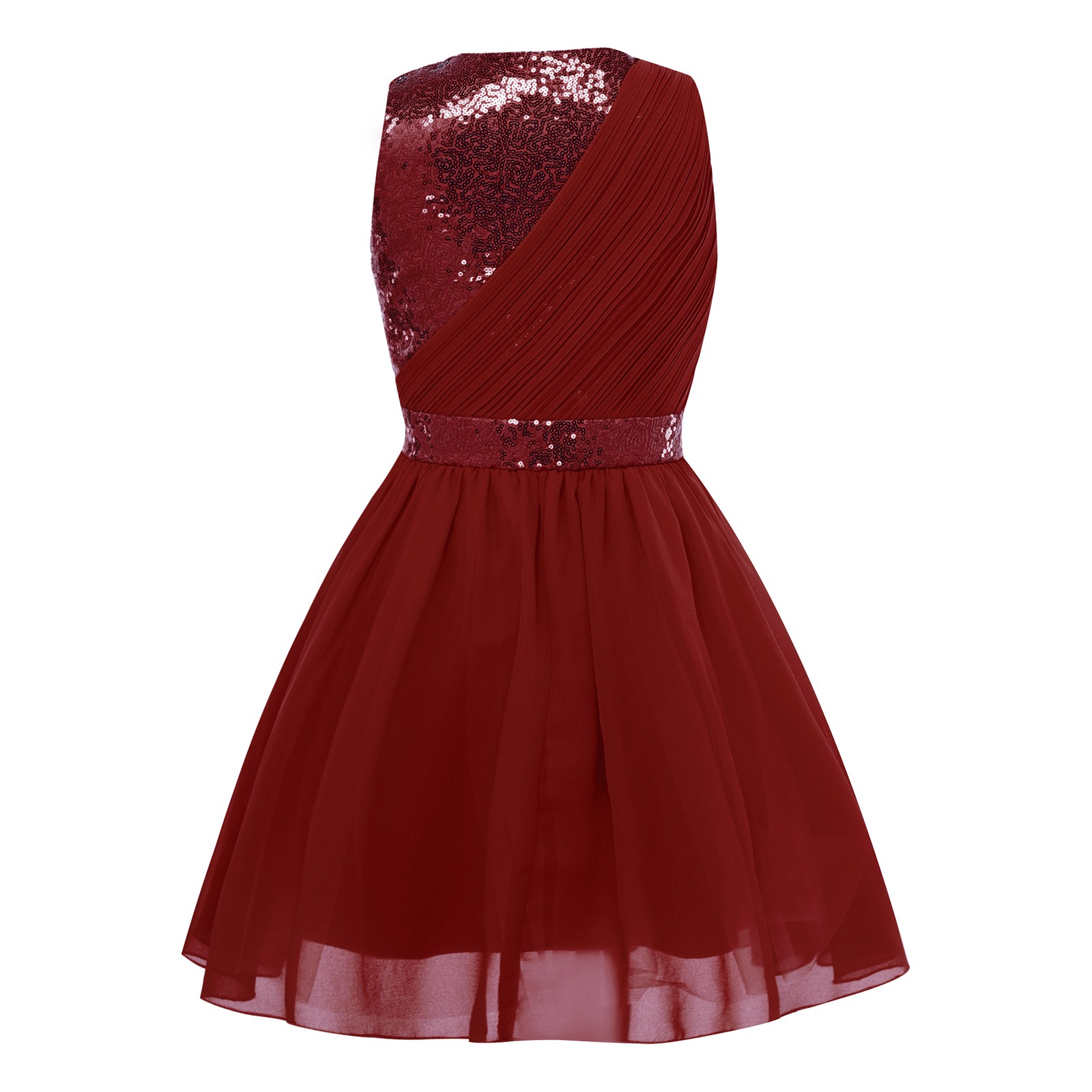 как выглядит Kids Girls Gown Asymmetrical Dresses Puff Dress Sparkly Glittery Formal Sequin фото