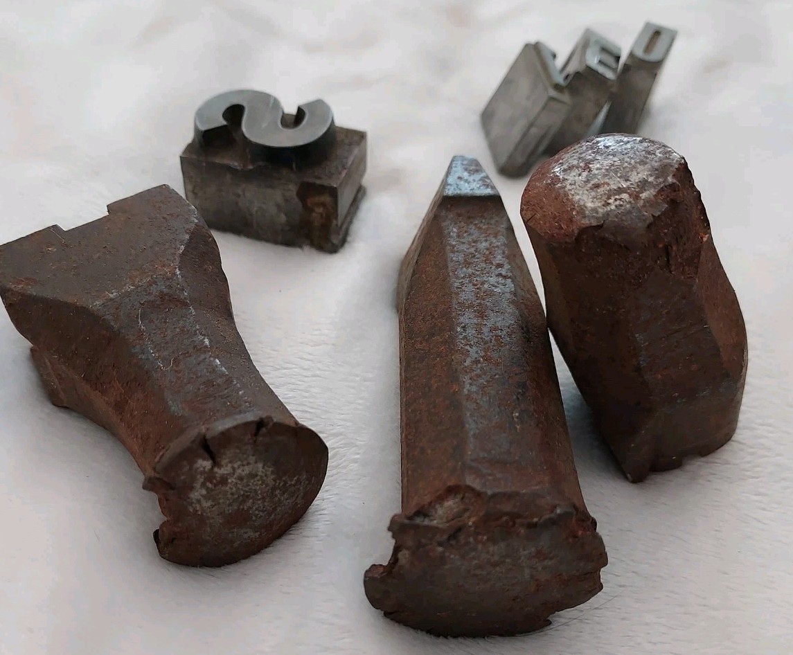 как выглядит Vintage LOT 7 Print Block Printer Letterpress Printing Metal Stamps Brands фото