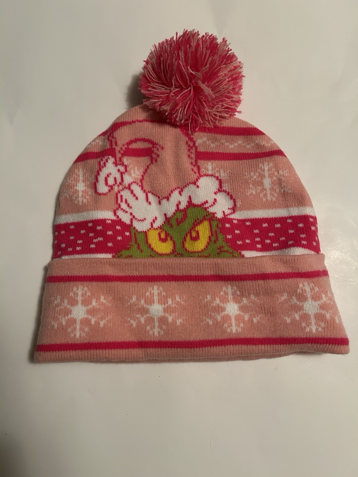 Dr Seuss Grinch Pink Knit Beanie Hat Pom Pom Holiday Winter One Size