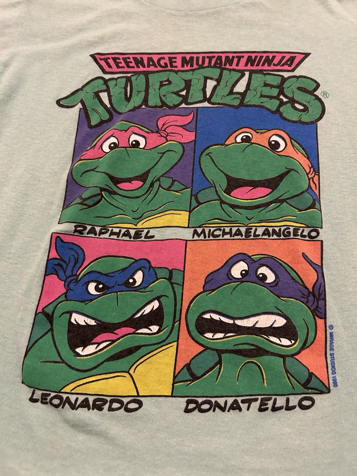 Vintage Teenage Mutant Ninja Turtles Shirt Kids Large Blue 1990 Single Stitch