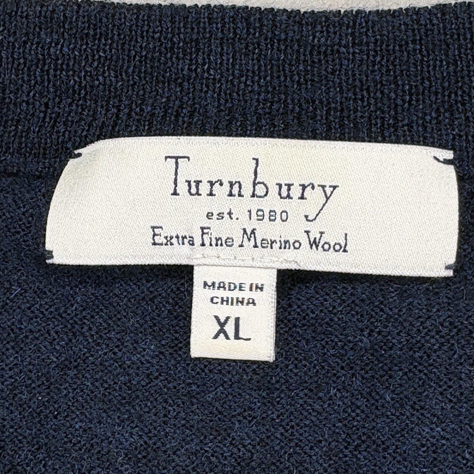 Merino Wool Turnbury Sweater Vest Men XL 100 Extra Fine Dark Blue V-Neck