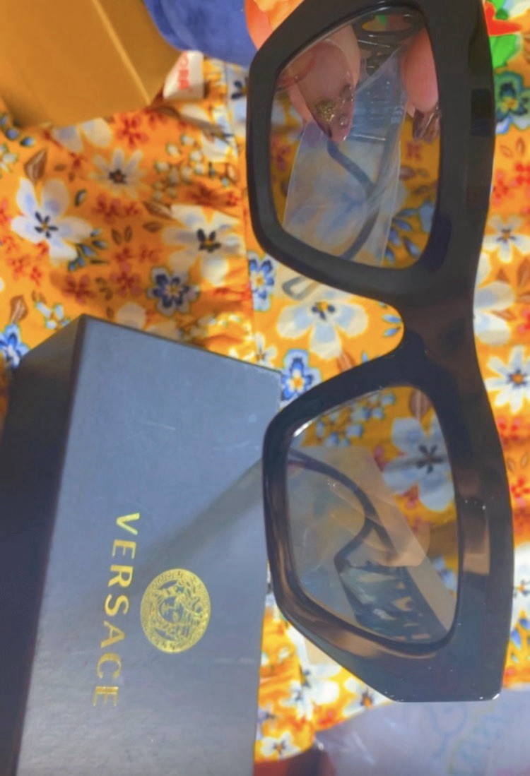 как выглядит Versace woman Geometric Black Plastic Sunglasses Gray Tinted Designer фото