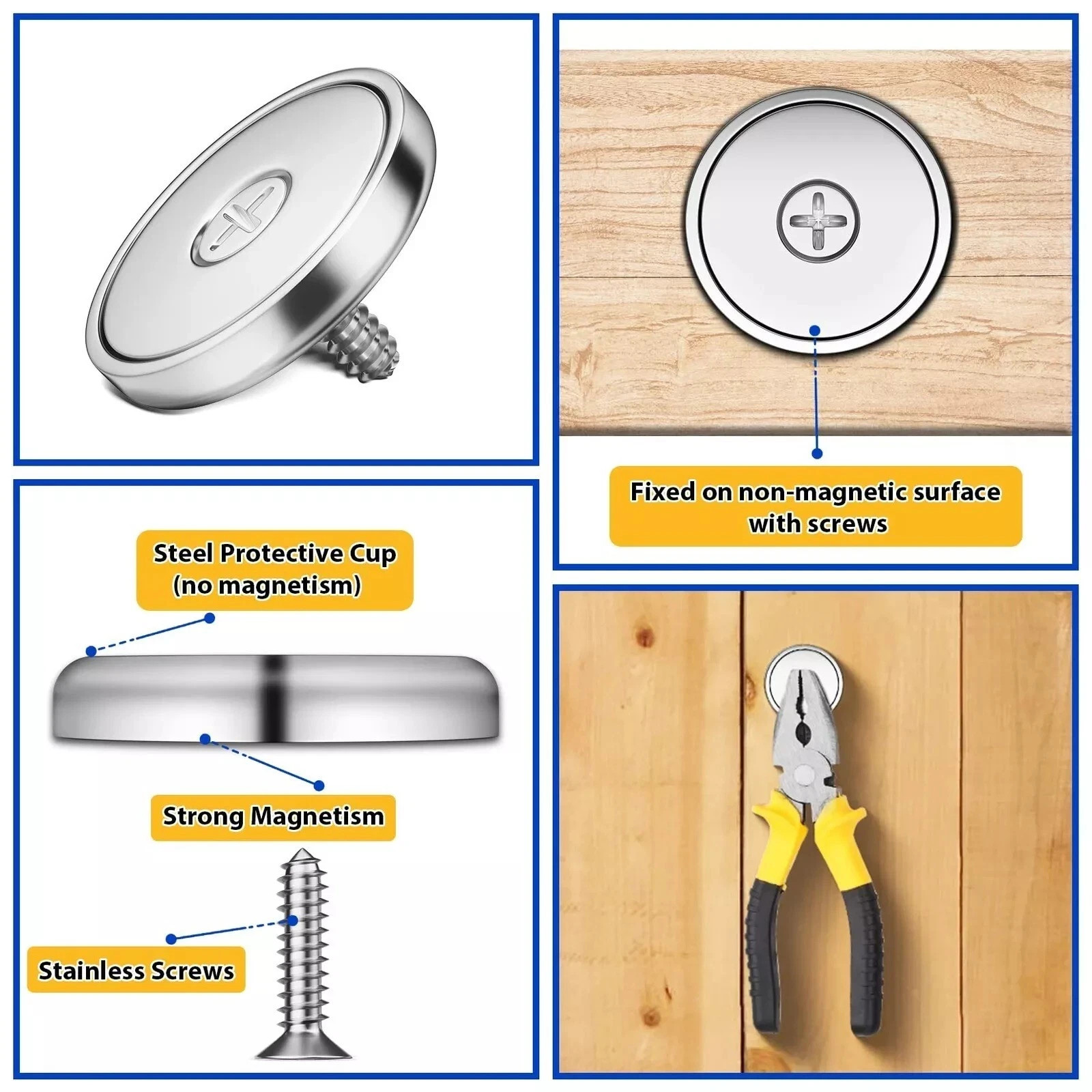 Pack of 8 Neodymium Magnet Cup 100 LBS Pull Force Rare Earth Magnets with Cou.