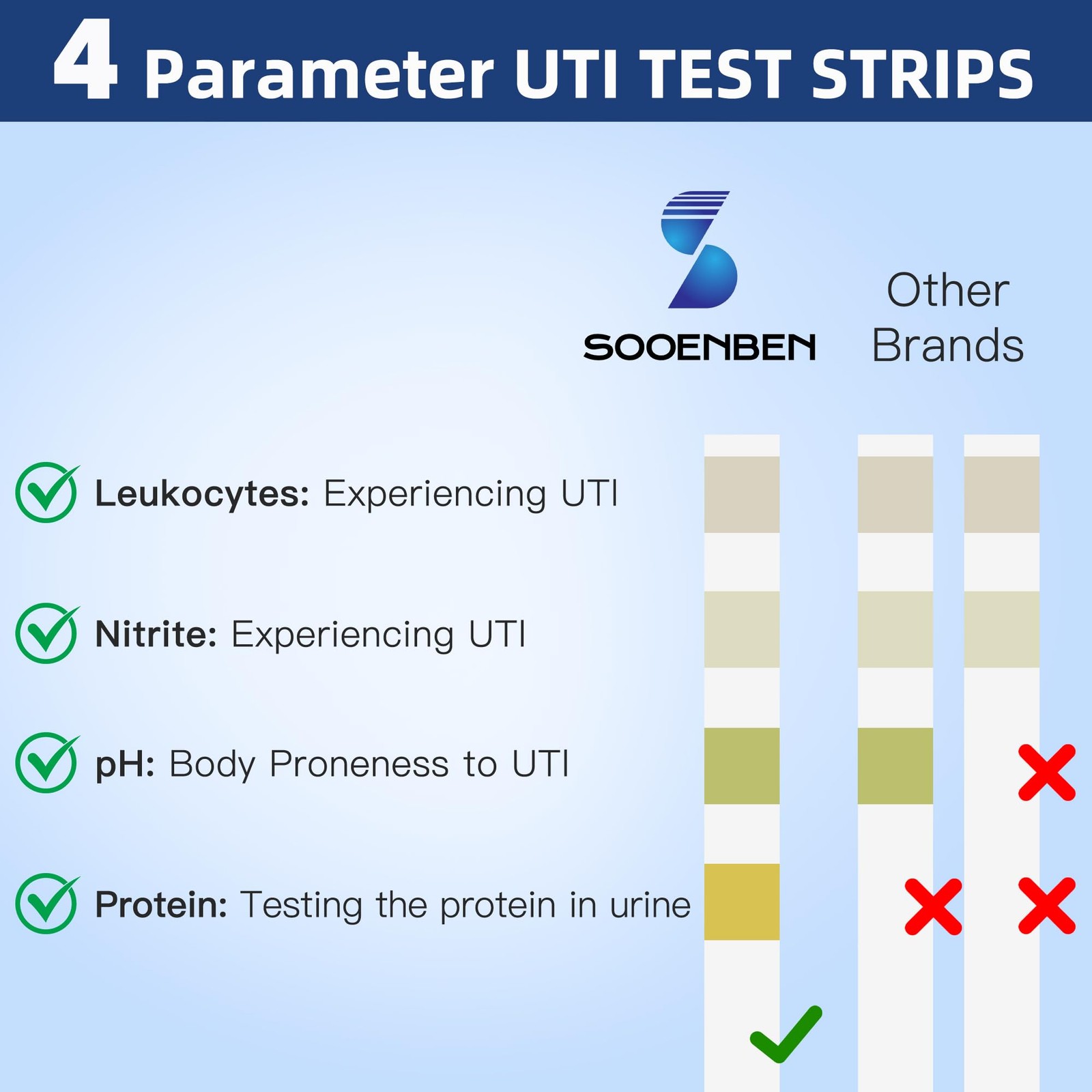 UTI Test Strips 4-in-1 Full Panel Urinalysis 50ct for Women Men Kids