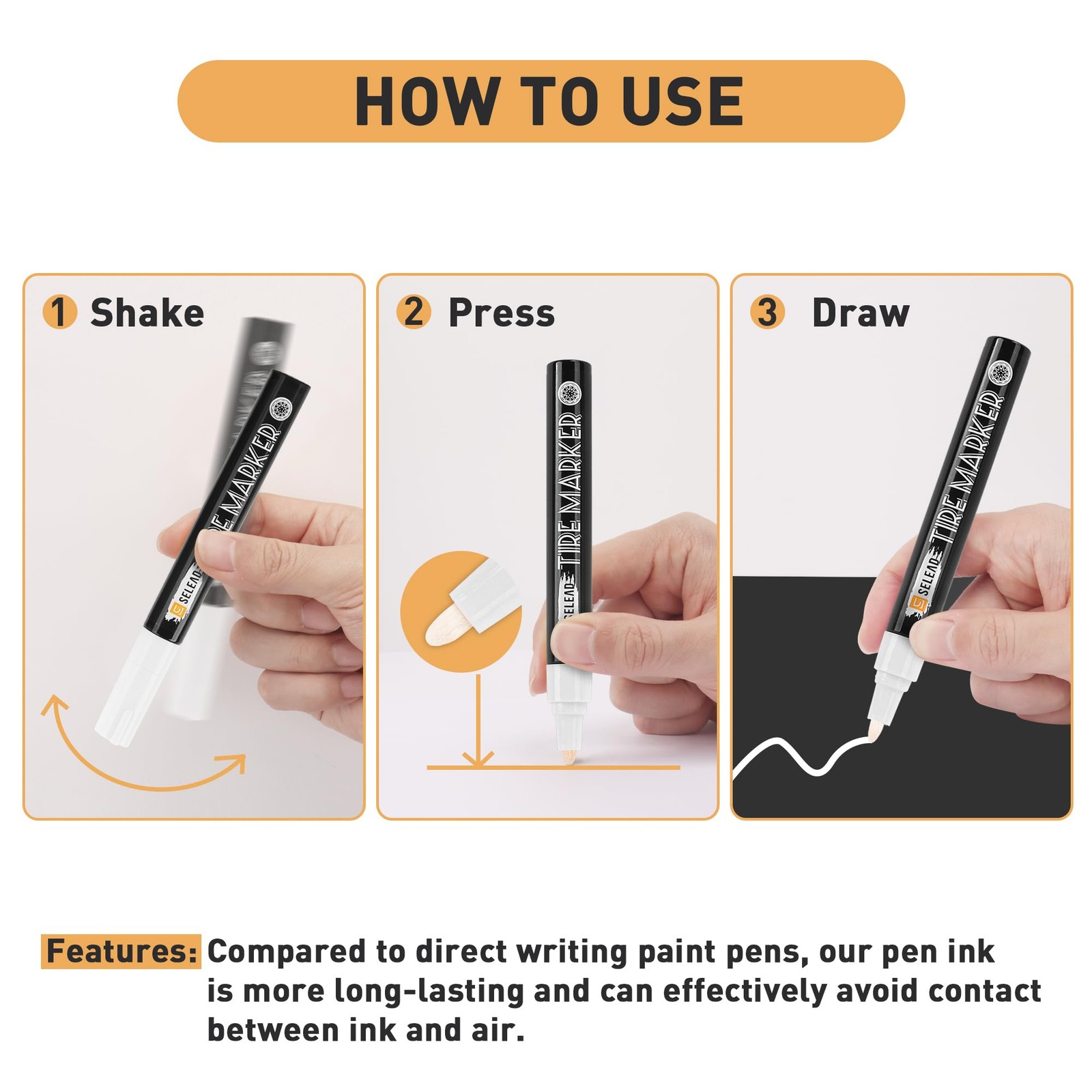 Tire Marker White - 8 Pack Paint Pens for Car Tires Lettering, Premium Profes...