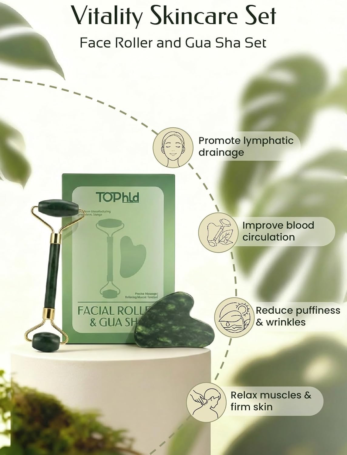 Face Roller Gua Sha Facial Tools, Face Massager for Self Care, Jade Roller for
