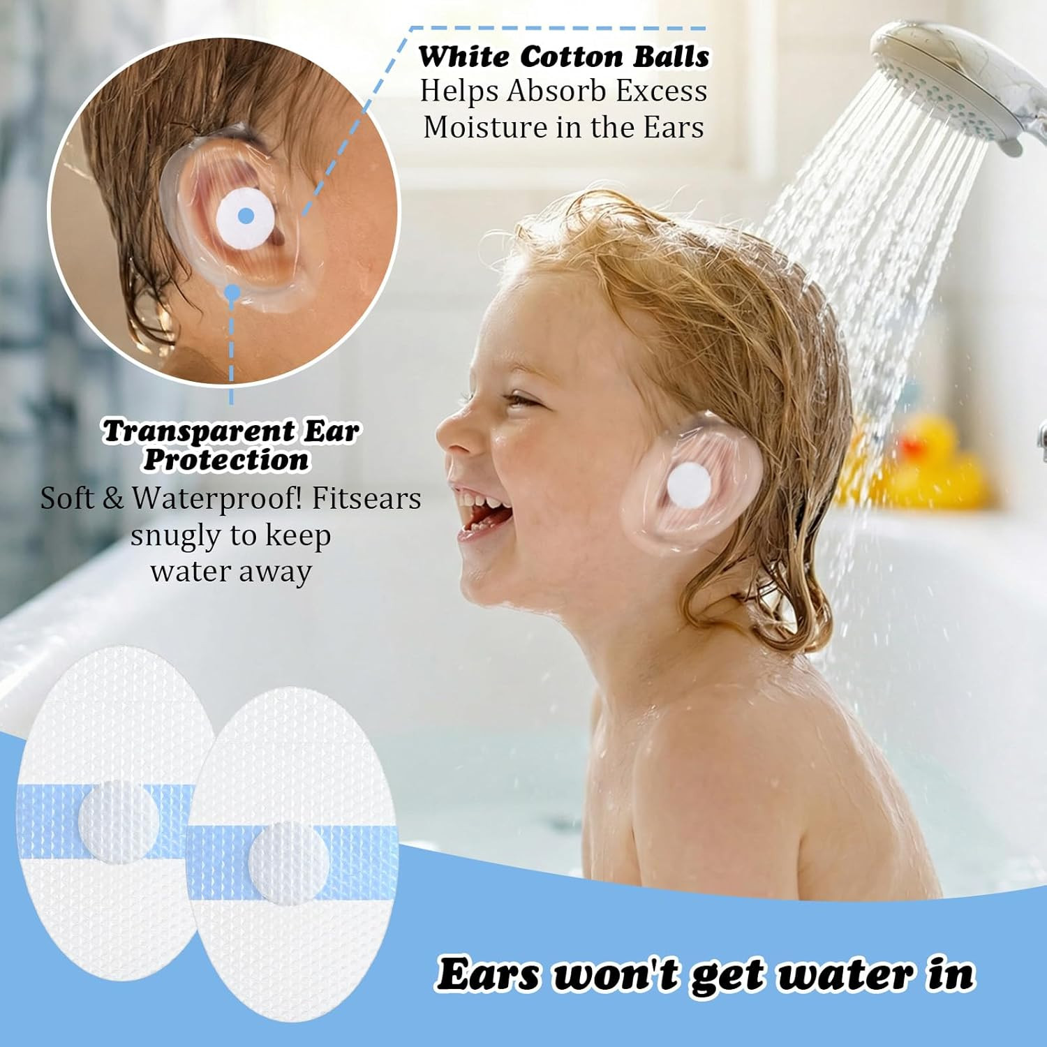 60 Pack Baby Ear Covers for Bath Kids Ear Covers with Cotton Ball, Waterproof Ea