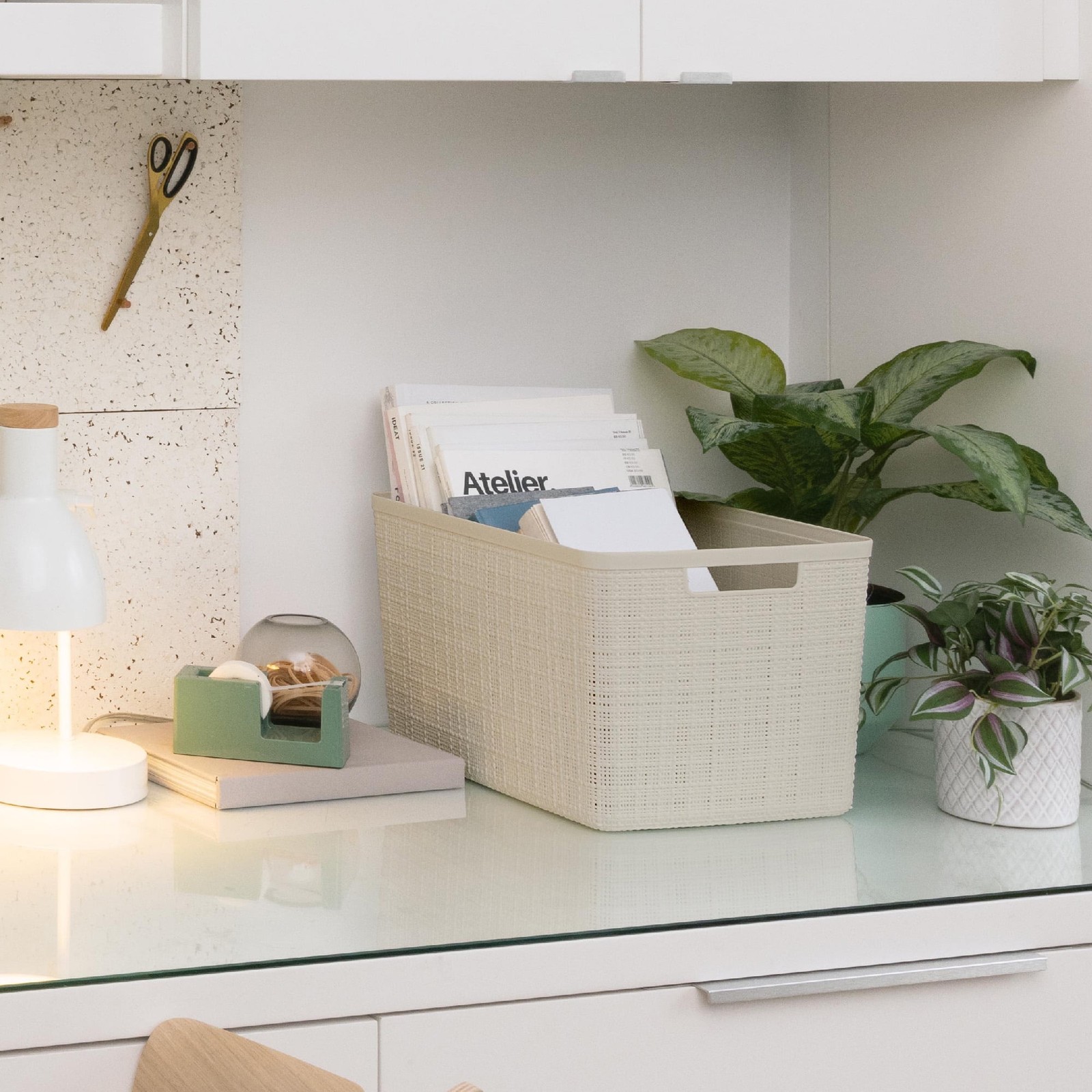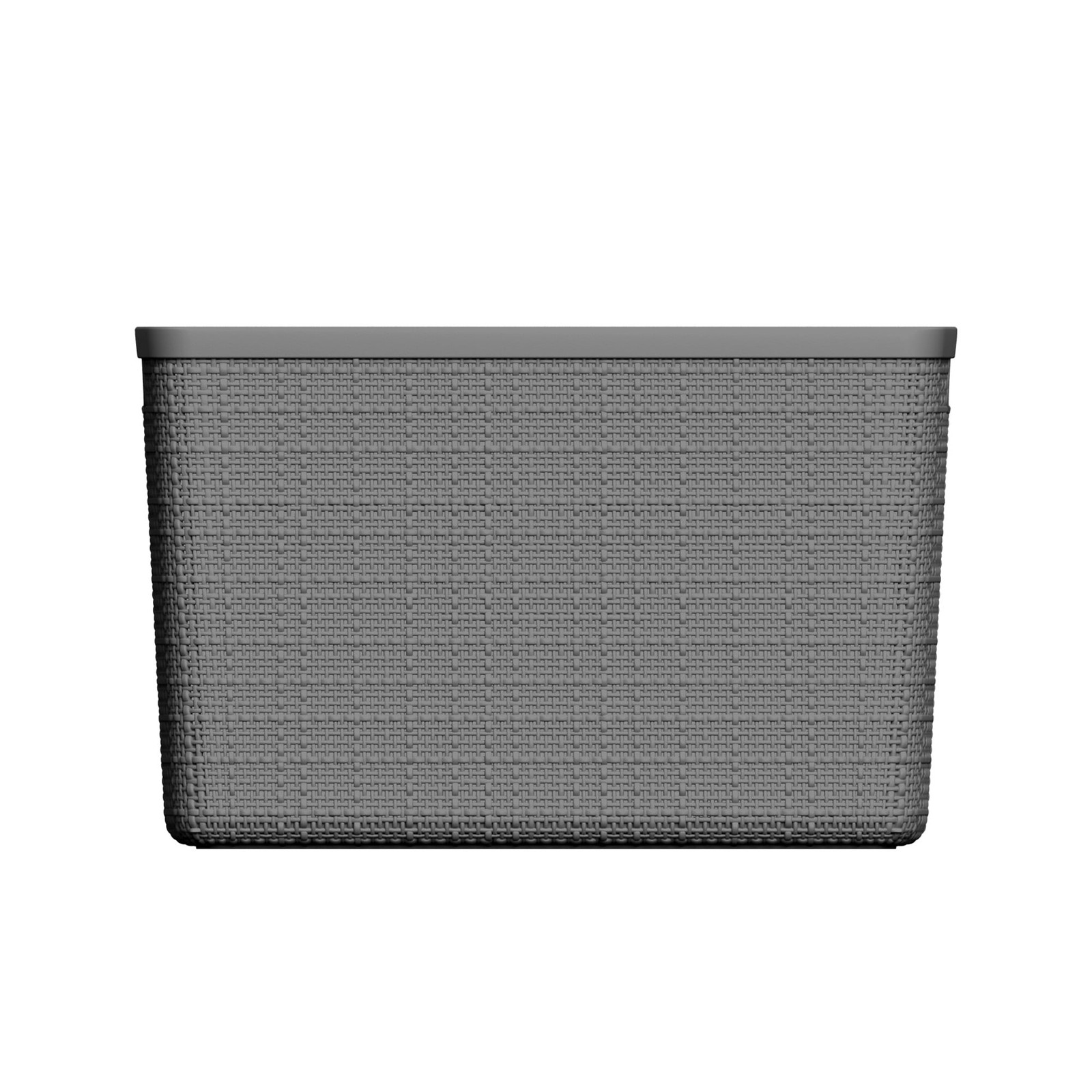 Jute Large Gray Plastic Decorative Storage Basket 14 in x 11 in x 9 in