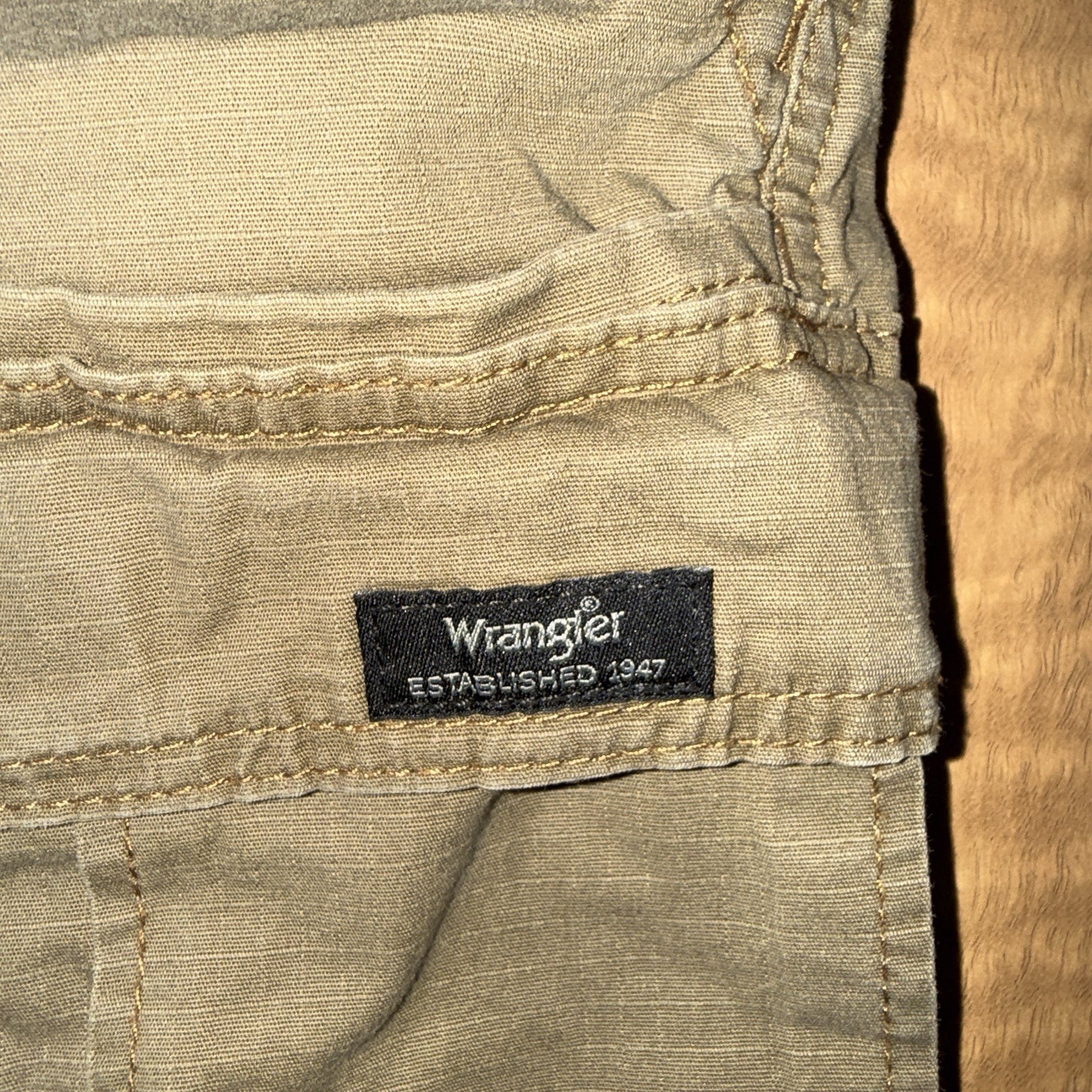 как выглядит Men s Wrangler Relaxed Fit Khaki Cargo Shorts Tan Size 34x10 фото