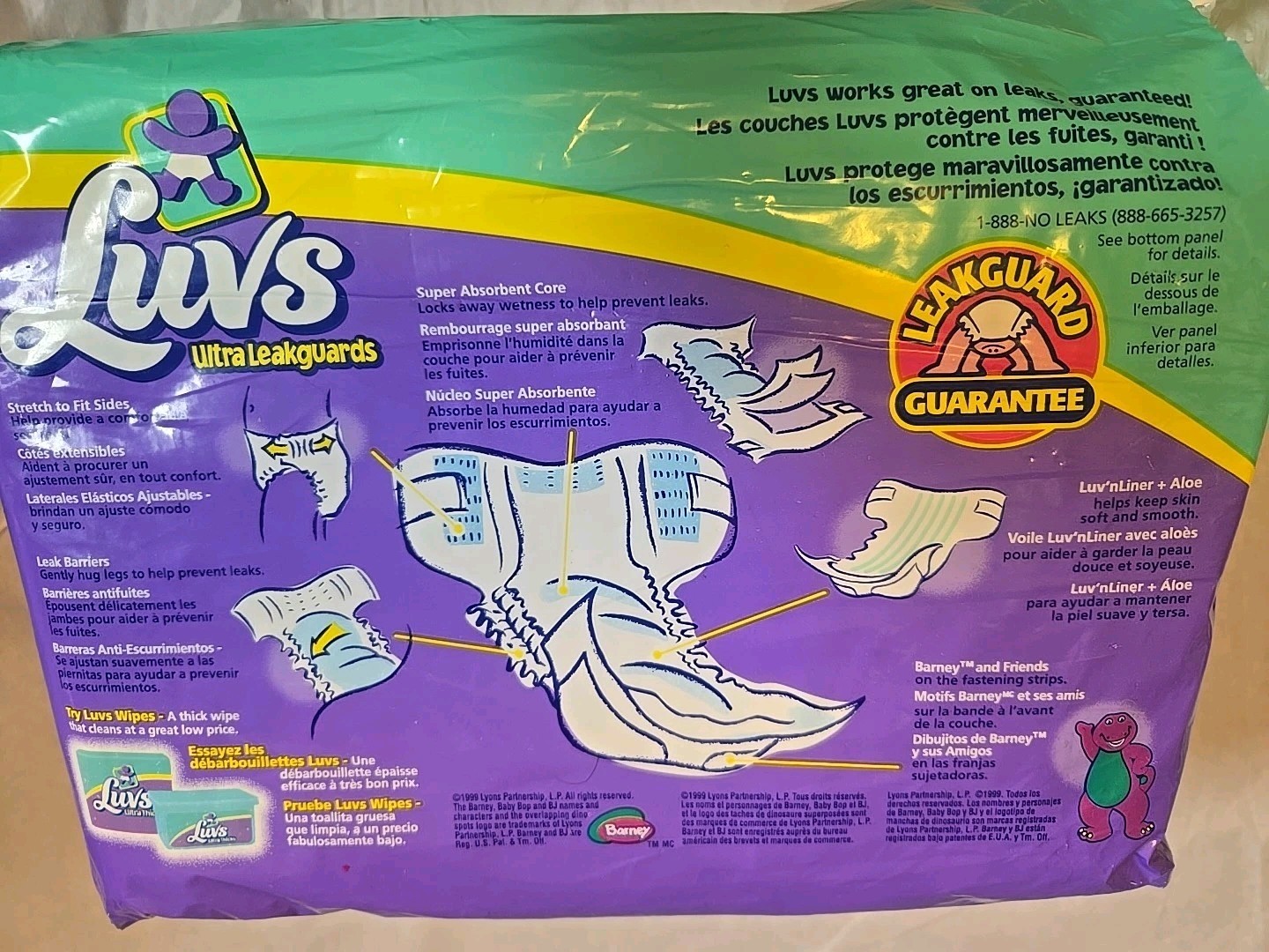 как выглядит ONE Sz 2 Barney The Dinosaur Luvs Diaper Plastic Backed Vtg 1999 90s Baby фото