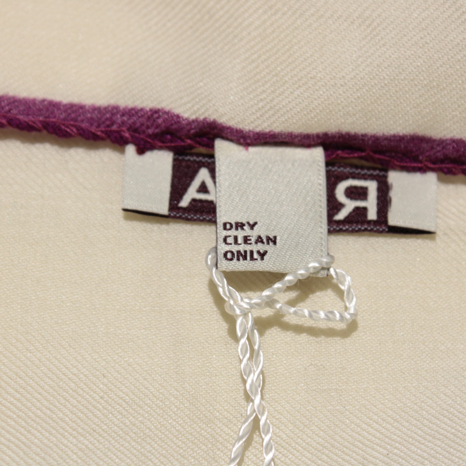 Roda NWT Wool / Silk Blend Pocket Square In Beige with Multicolor Border