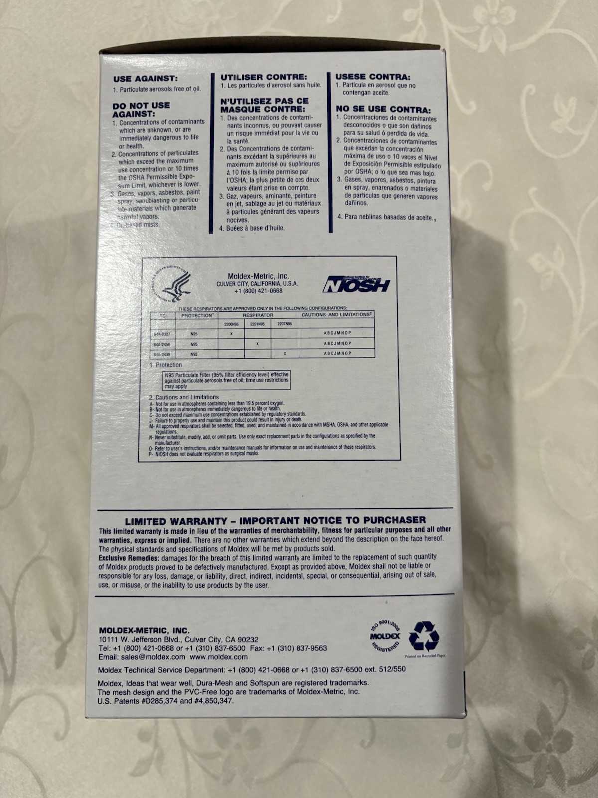Expired Moldex 2200N95 Series M/L Particulate Respirator Face Mask, 20 count