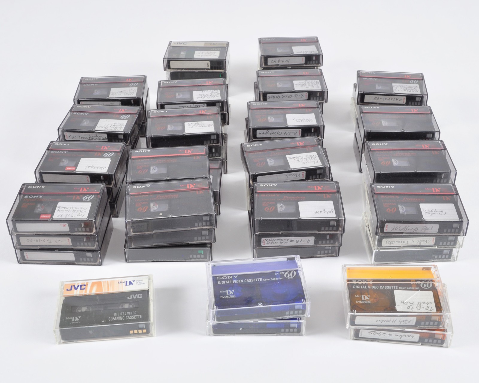 59 MiniDV Tape Lot Sony JVC Maxell DVM60 Digital Video Cassette w/ Cleaner