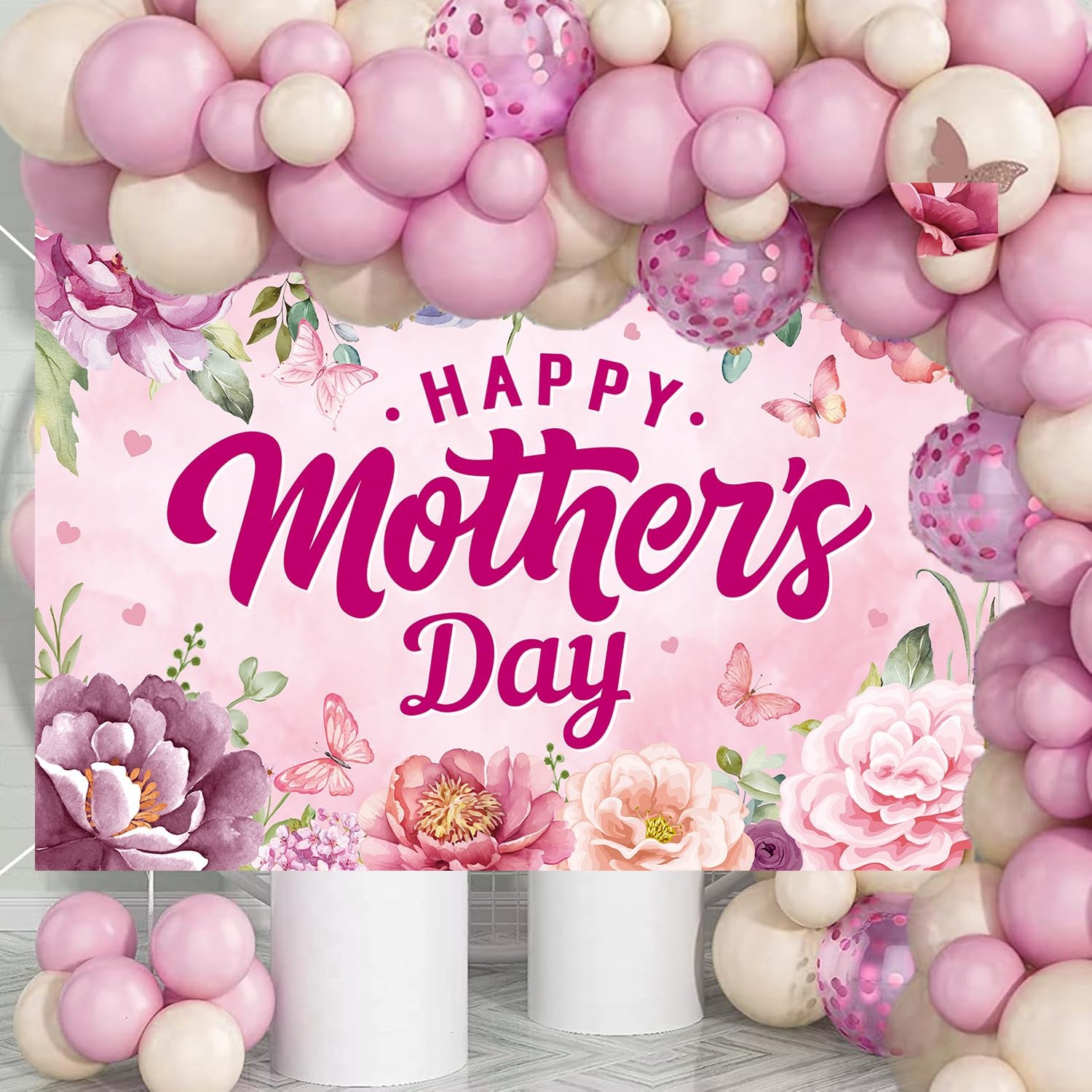Happy Mother's Day Banner Backdrop 7x5FT Pink Rose Flowers Wall 7x5FT 84'x60'