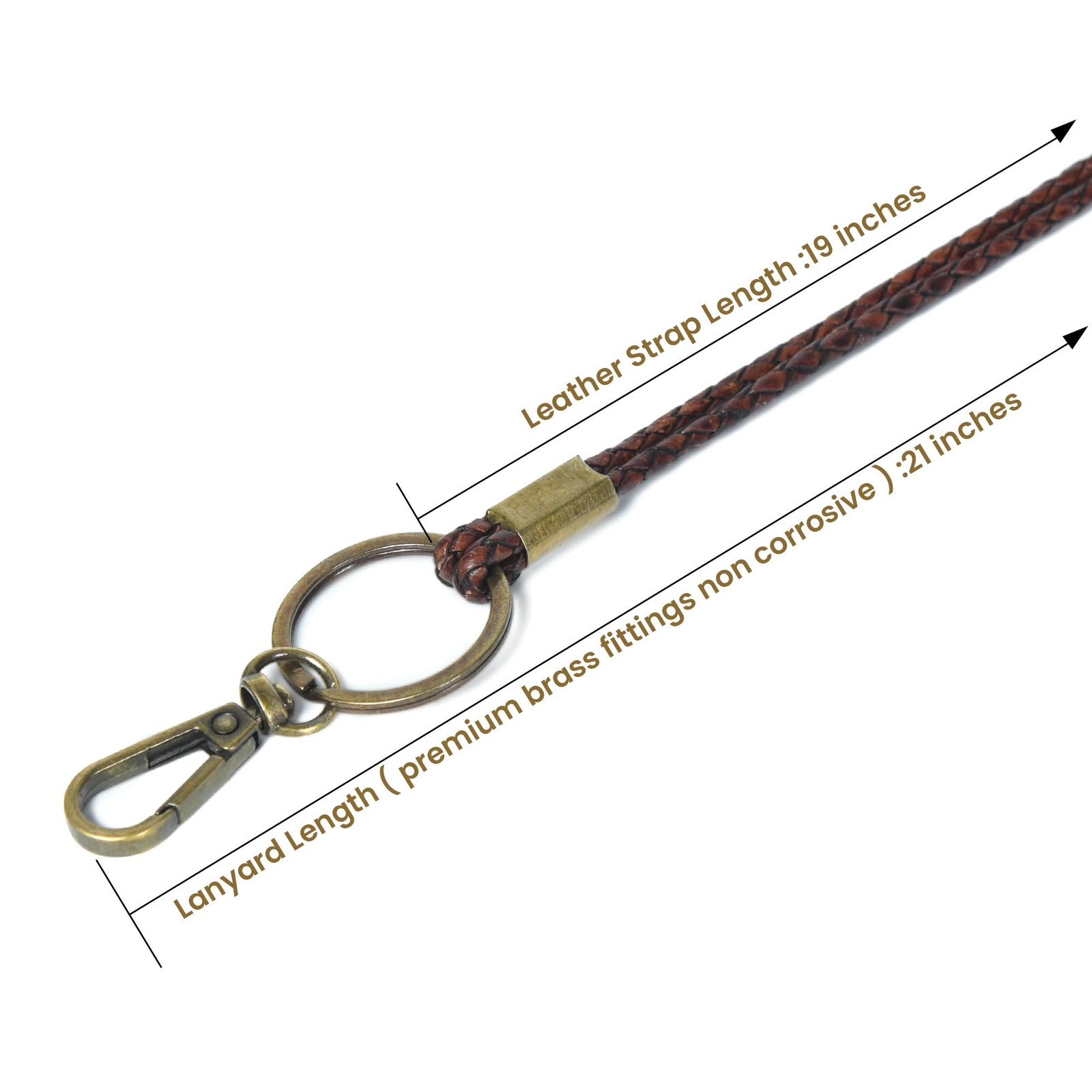 GENIQUE leather lanyards for id badges, Free Size, Antique Brown Distressed