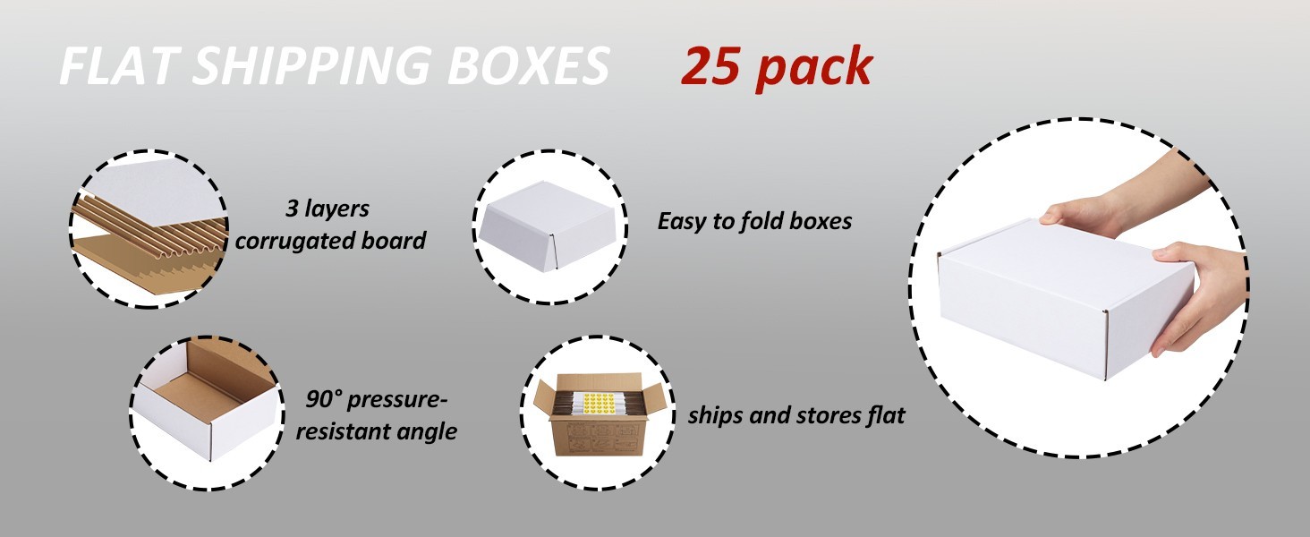 12x9x2 Shipping Boxes Set of 25 - White Corrugated Cardboard for Packing Maili