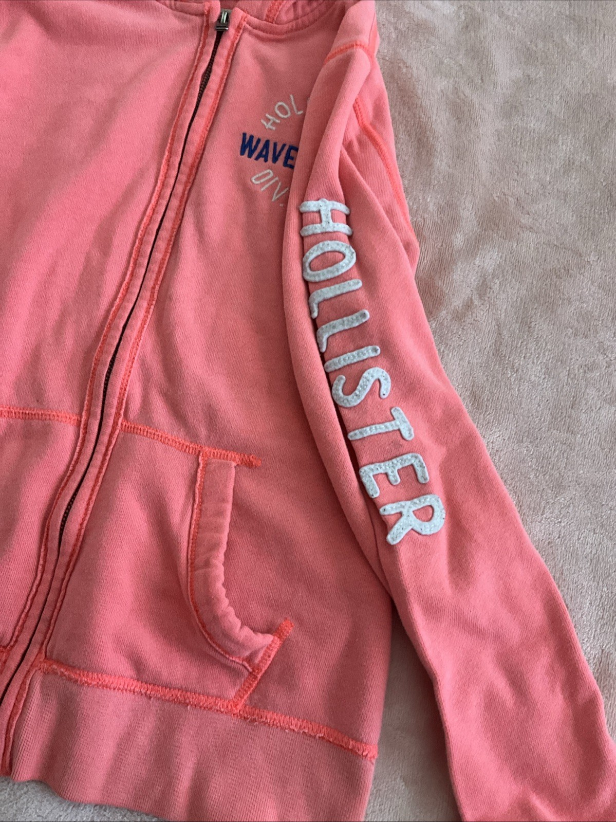 как выглядит Hollister California Pink Full Zip Hoodie Sweatshirt Graphic Womens Med Flaws фото