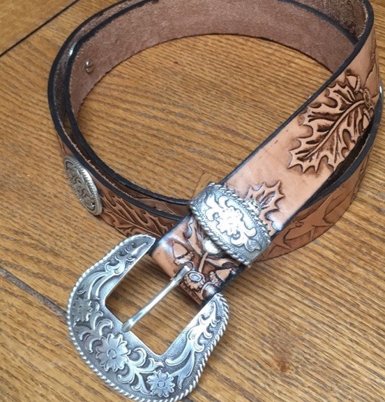 как выглядит Vintage Tooled Leather Western Belt Men s 46 USA Cowboy Horse Oak Pattern фото