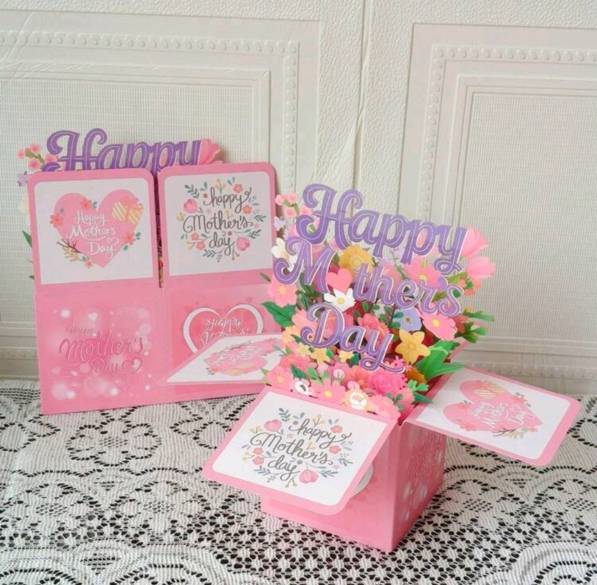 Handcrafted Pop-Up Mother's Day Greeting Card Floral Design Purple Pink