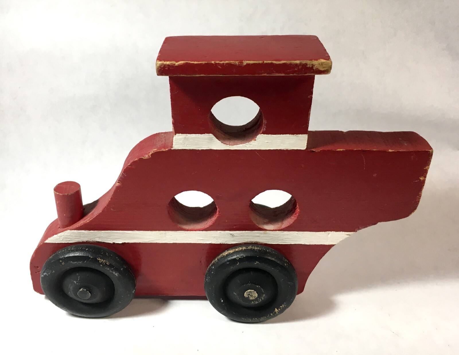 Wood Toy Train Vintage Hand Made Preschool Age Kids Railroad Steam Engine 6 Pc