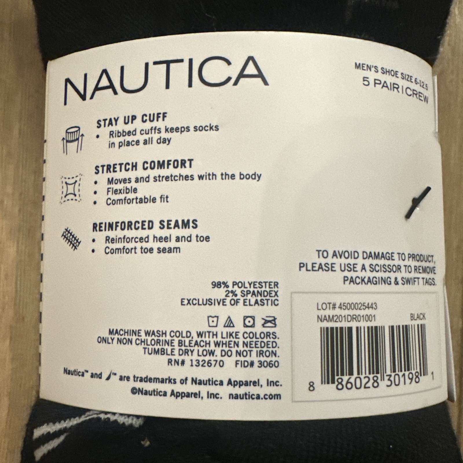 Nautica 5-Pair Men's Casual/Dress Crew Socks Black 6-12.5 Stretch NEW