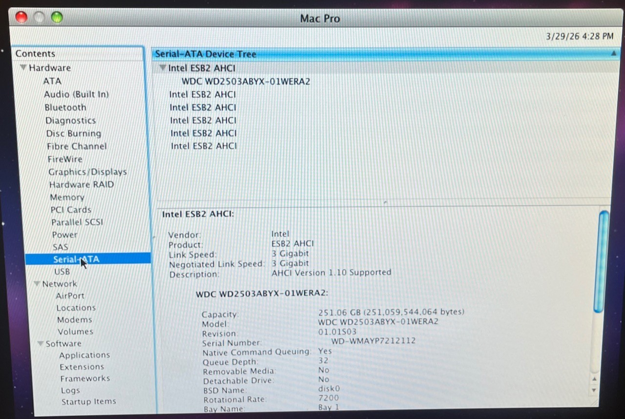 Apple MacPro 1,1 Quad Core - 2.0GHz - 2GB RAM 250GB HDD - Mac OS 10.6