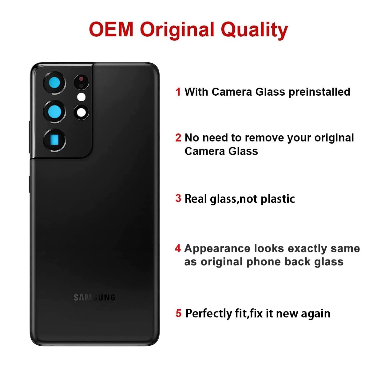 Rear Back Glass Replacement for Samsung Galaxy S21 Ultra 5G with Pre-Installe...