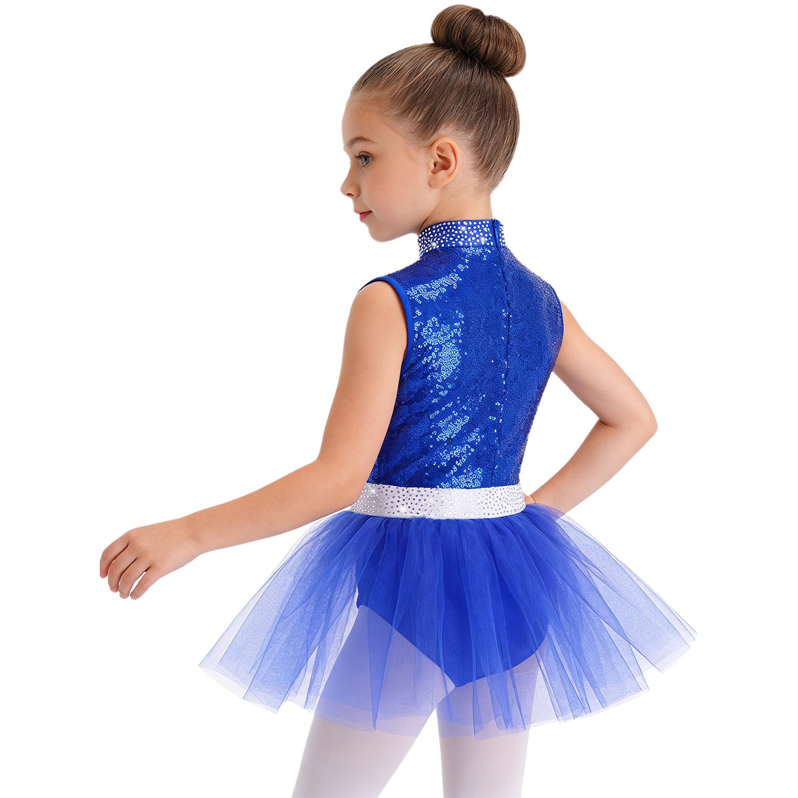 Girls Tutu Leotard Tulle Skirt Sequin Ballet Dance Dress Sleeveless Performance