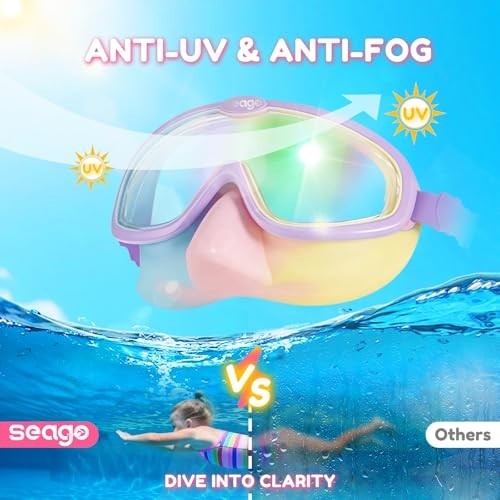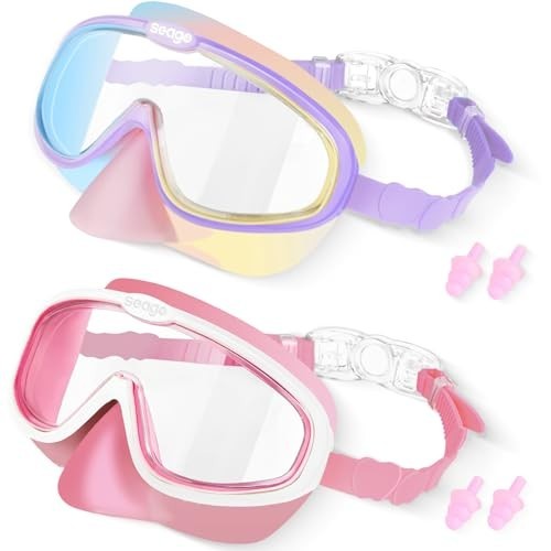 Kids Swim Goggles 2 Pack for Ages 3-12, Anti-Fog, Clear View, Toddler Nose Cover